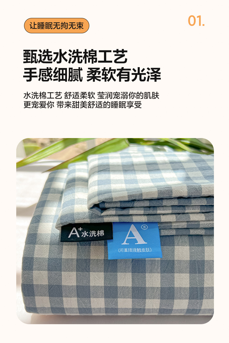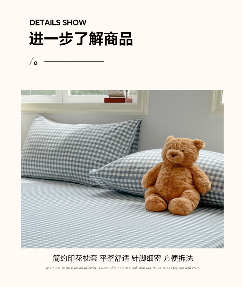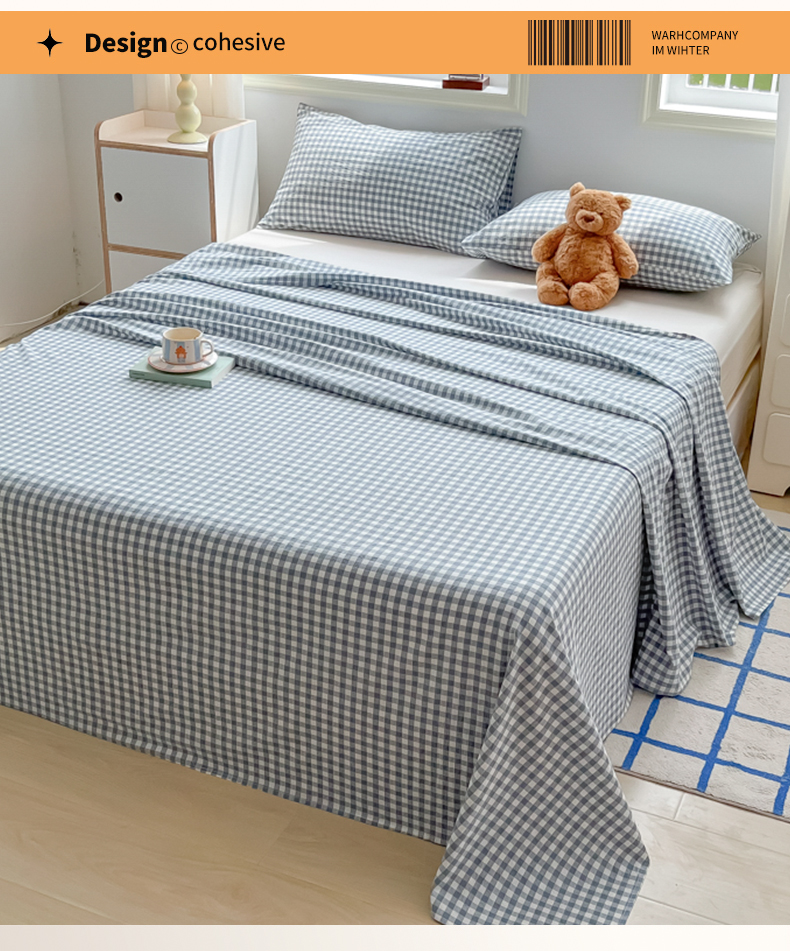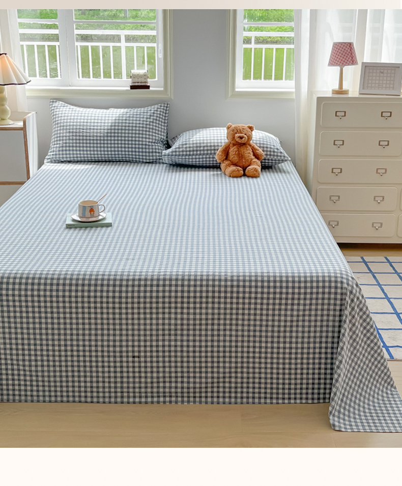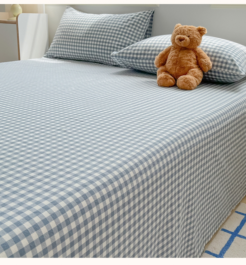 商品名称:韩巢家纺 2025新款格子纯色A类水洗棉床单单件 A类兰色格-床单
