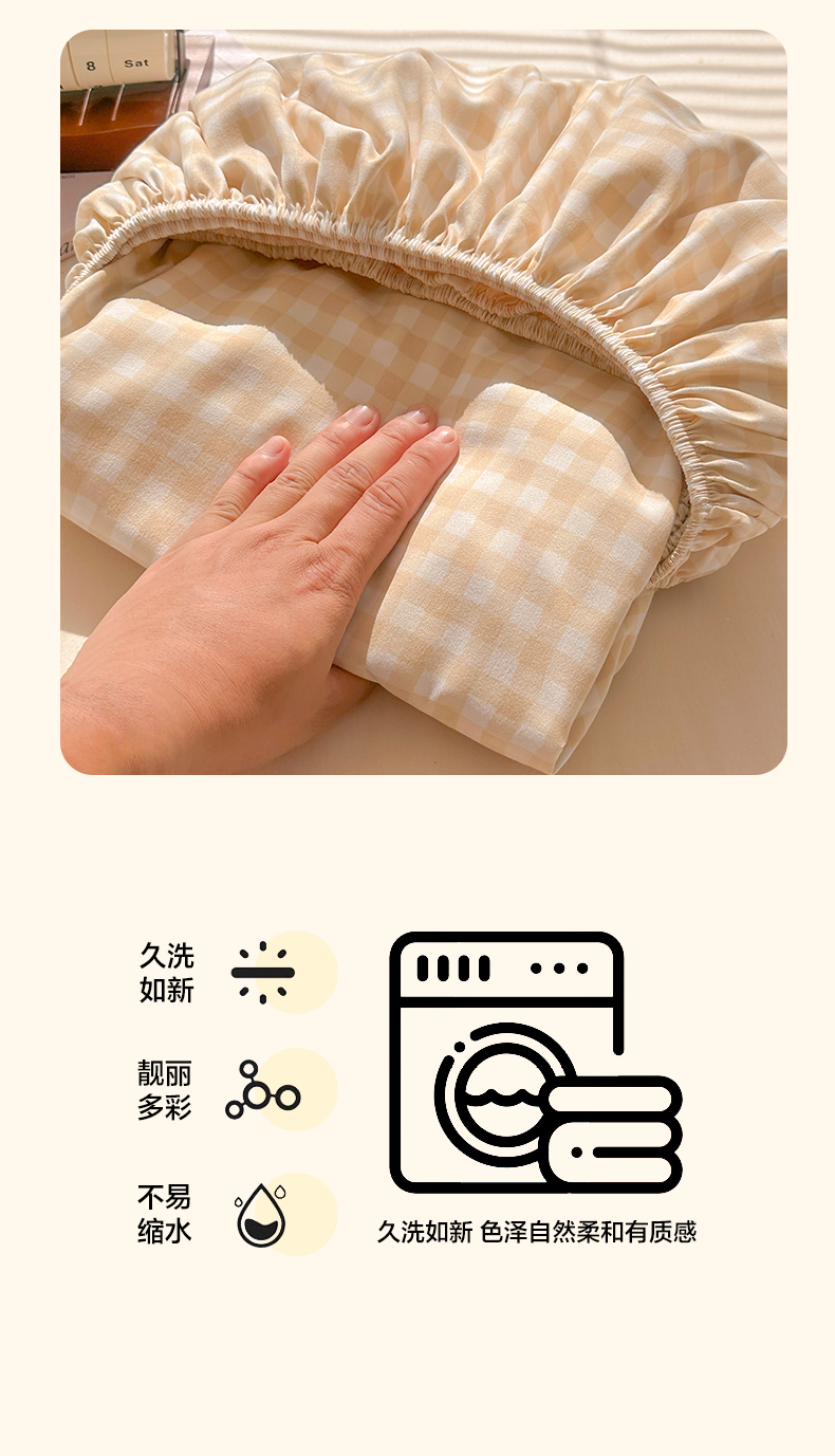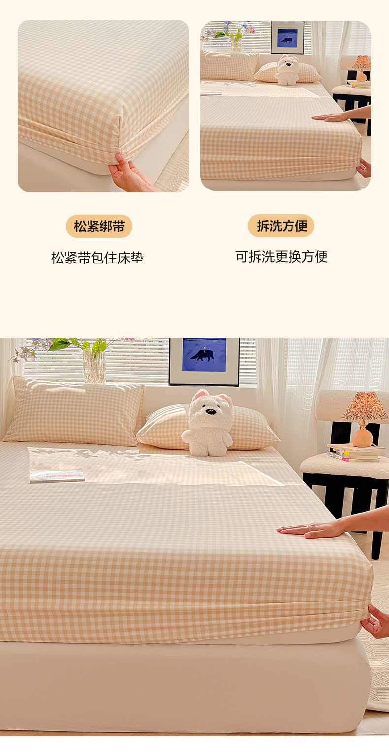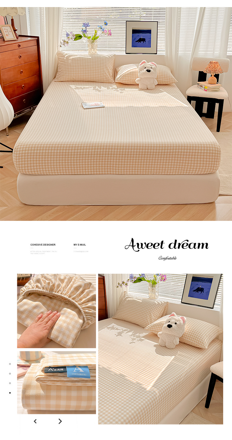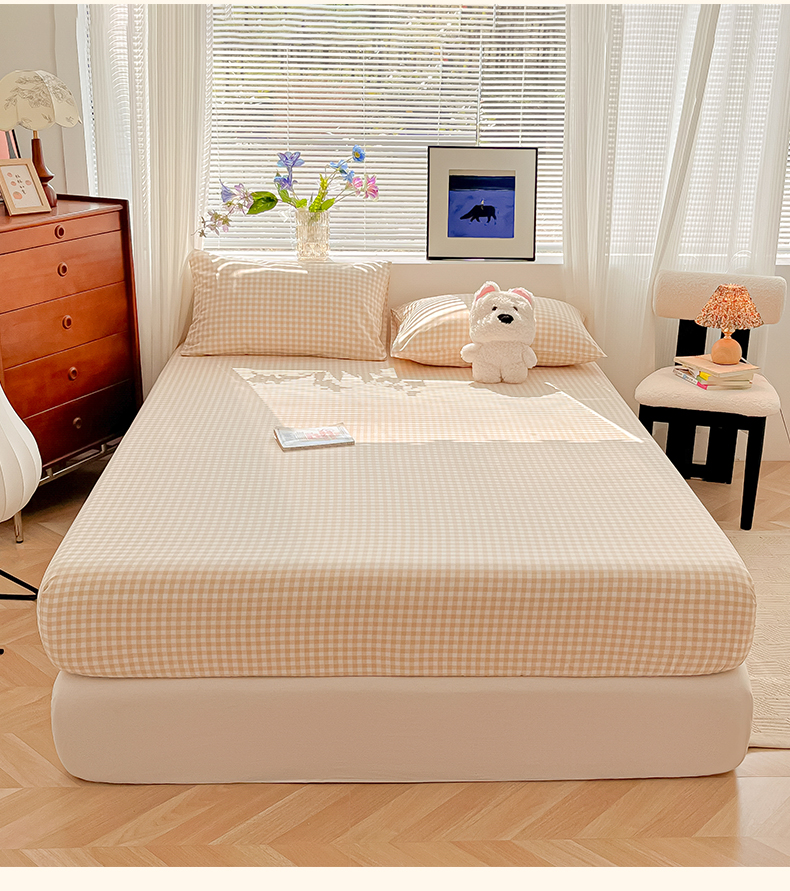 • 91家纺网 家纺一手货源 找家纺 韩巢家纺 2025新款A类纯色格子水洗棉床笠单件床罩床套 浅咖格