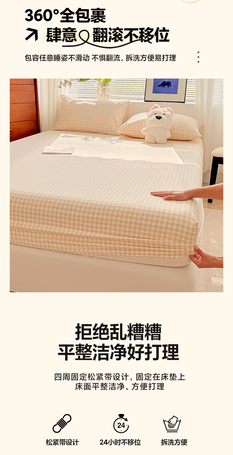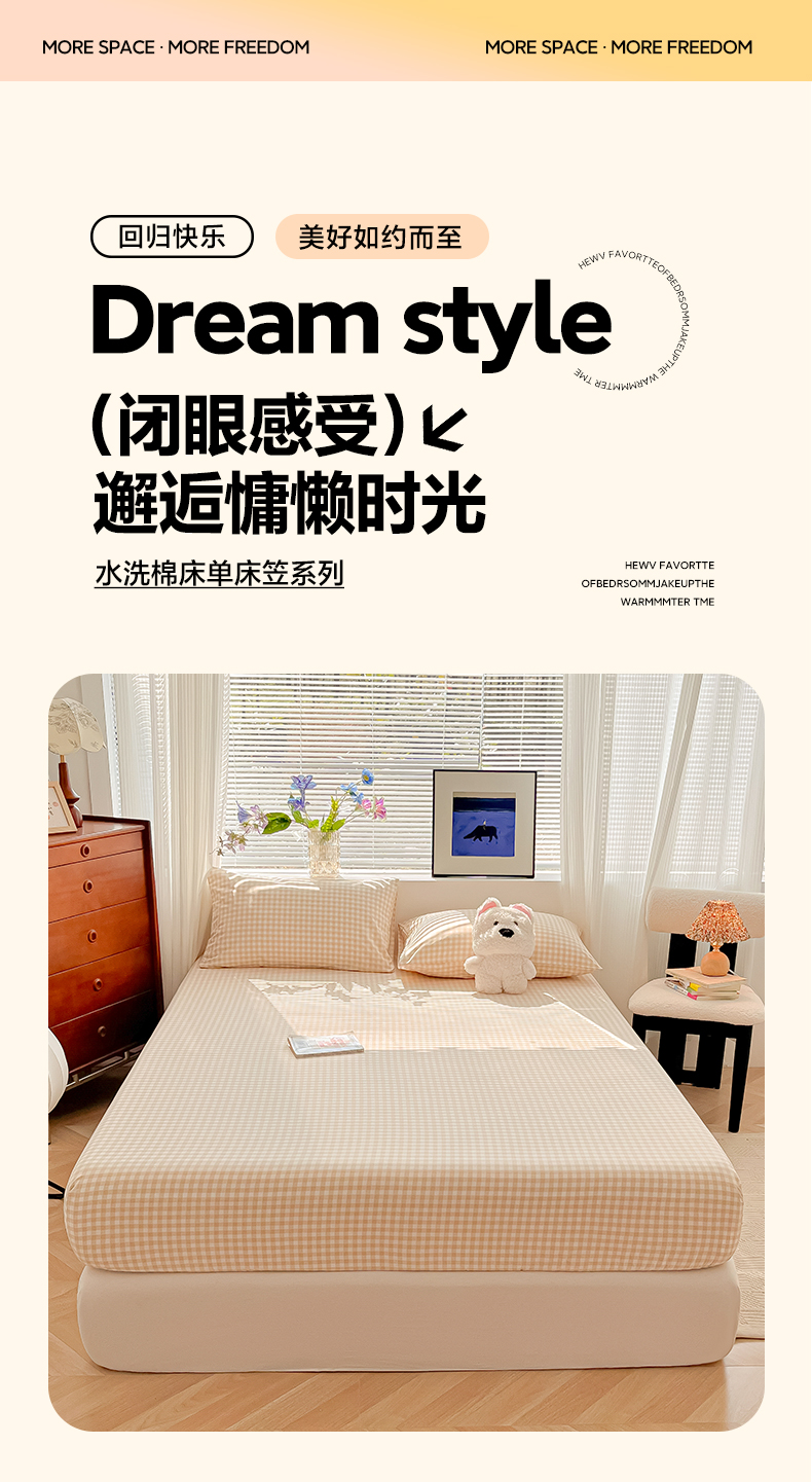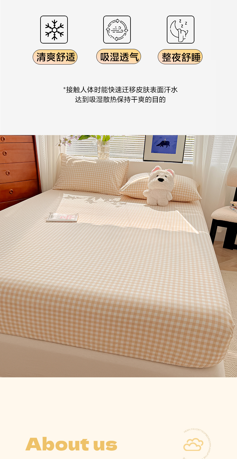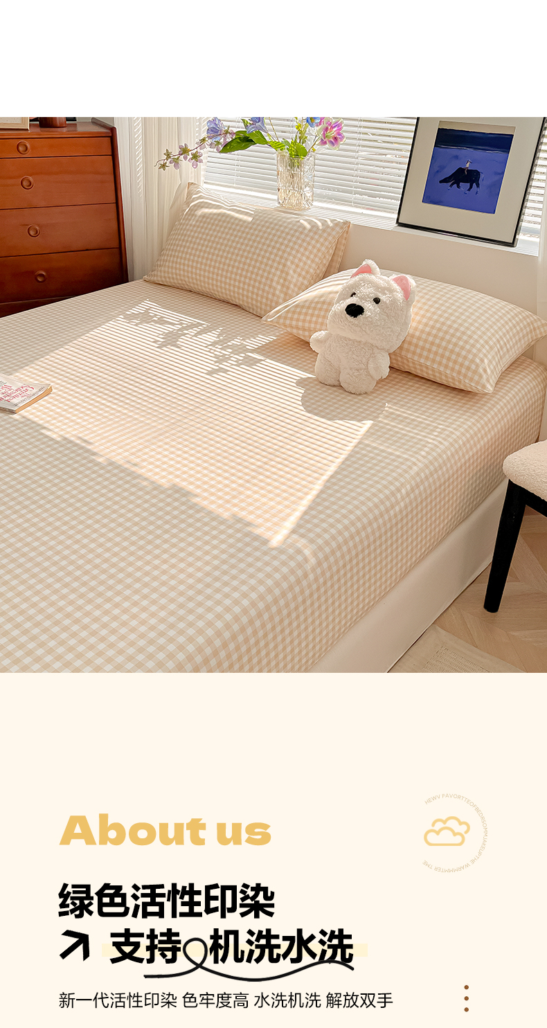• 91家纺网 家纺一手货源 找家纺 韩巢家纺 2025新款A类纯色格子水洗棉床笠单件床罩床套 浅咖格