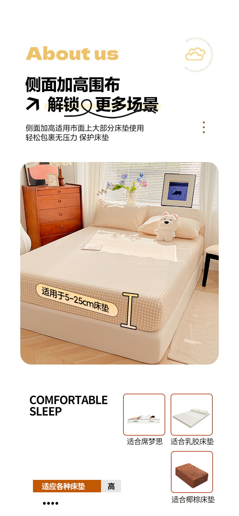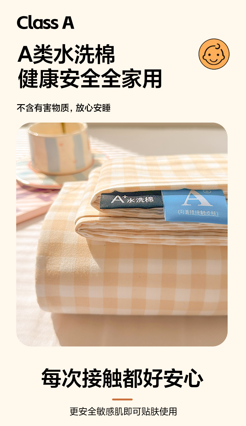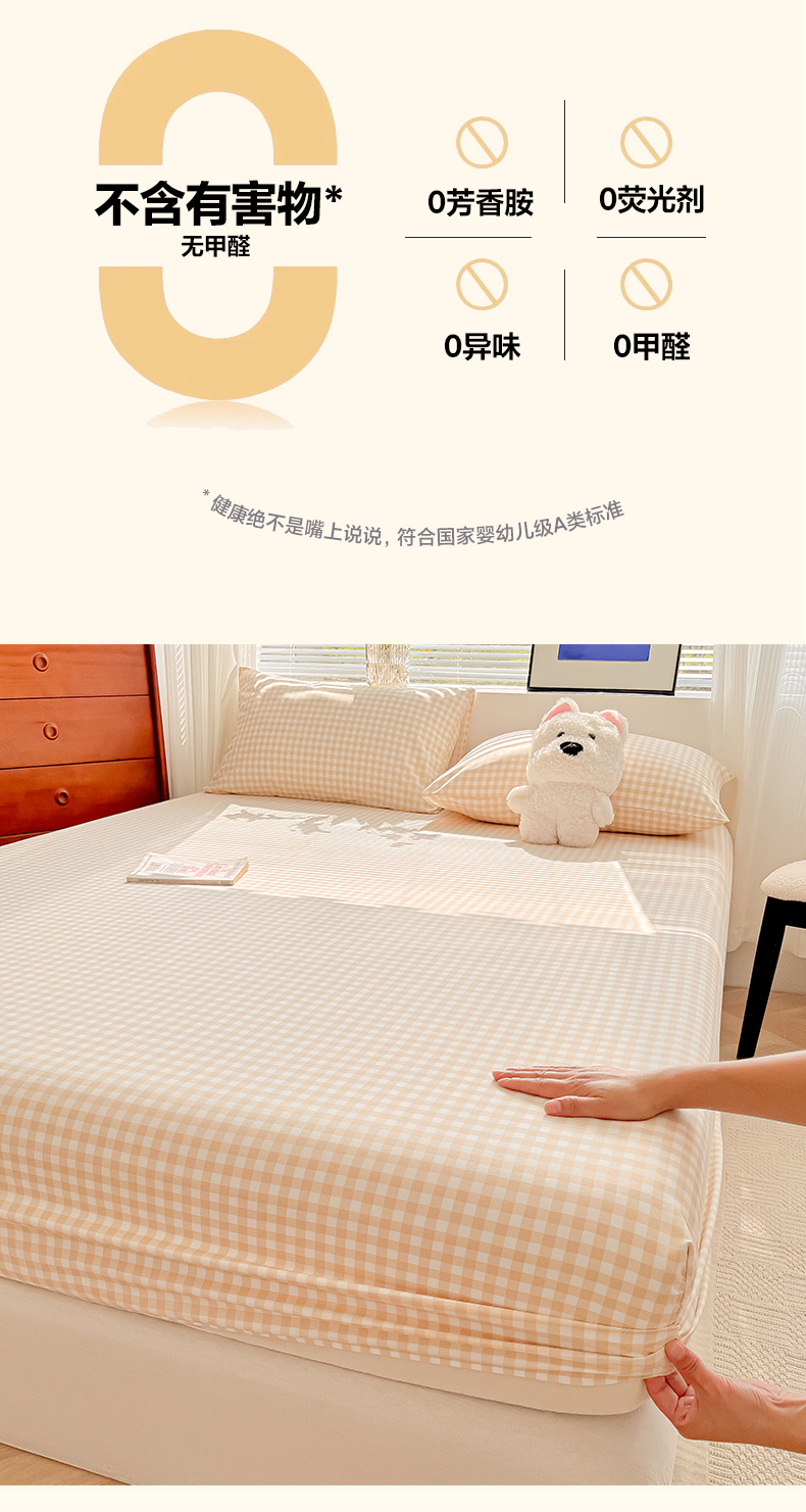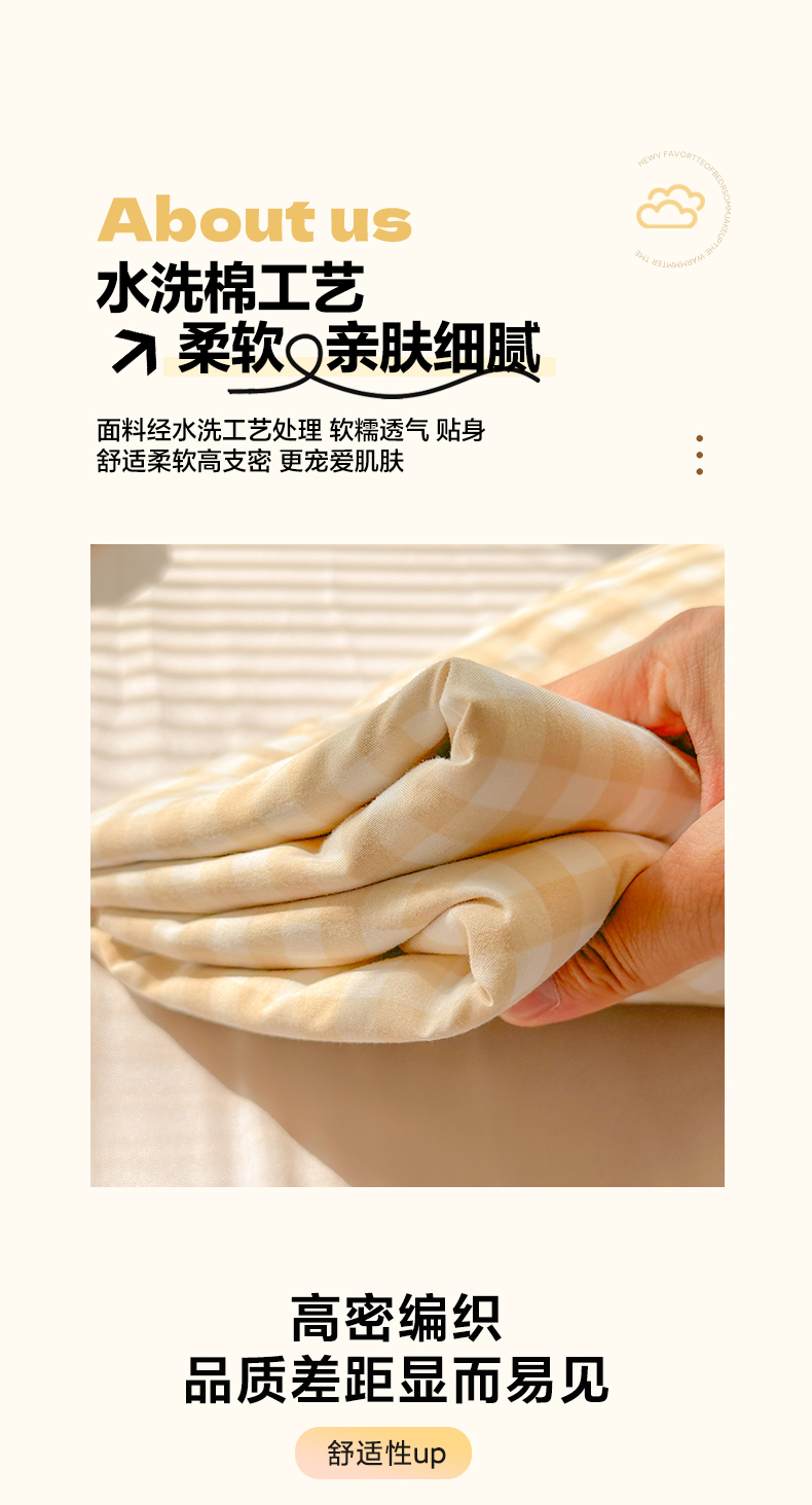 • 91家纺网 家纺一手货源 找家纺 韩巢家纺 2025新款A类纯色格子水洗棉床笠单件床罩床套 浅咖格