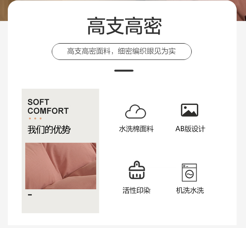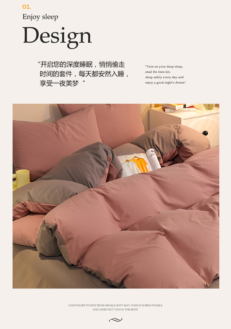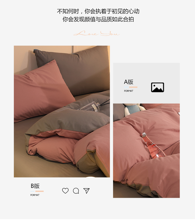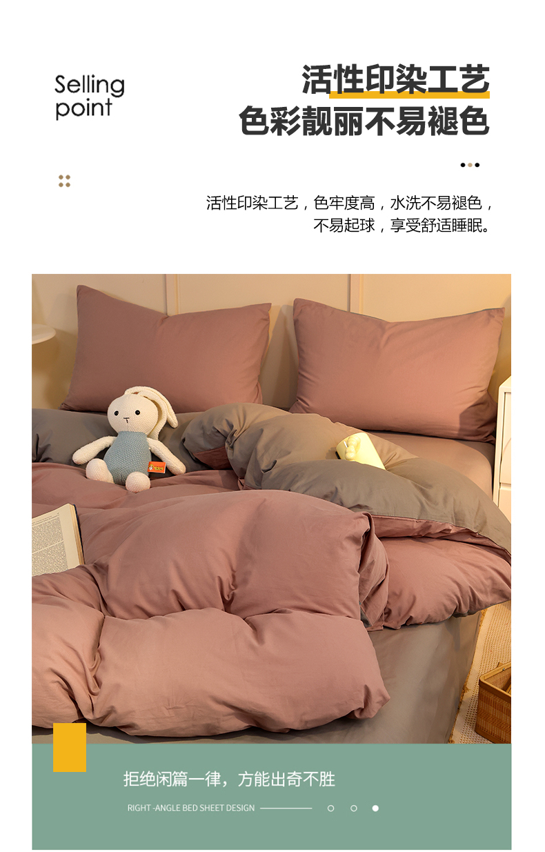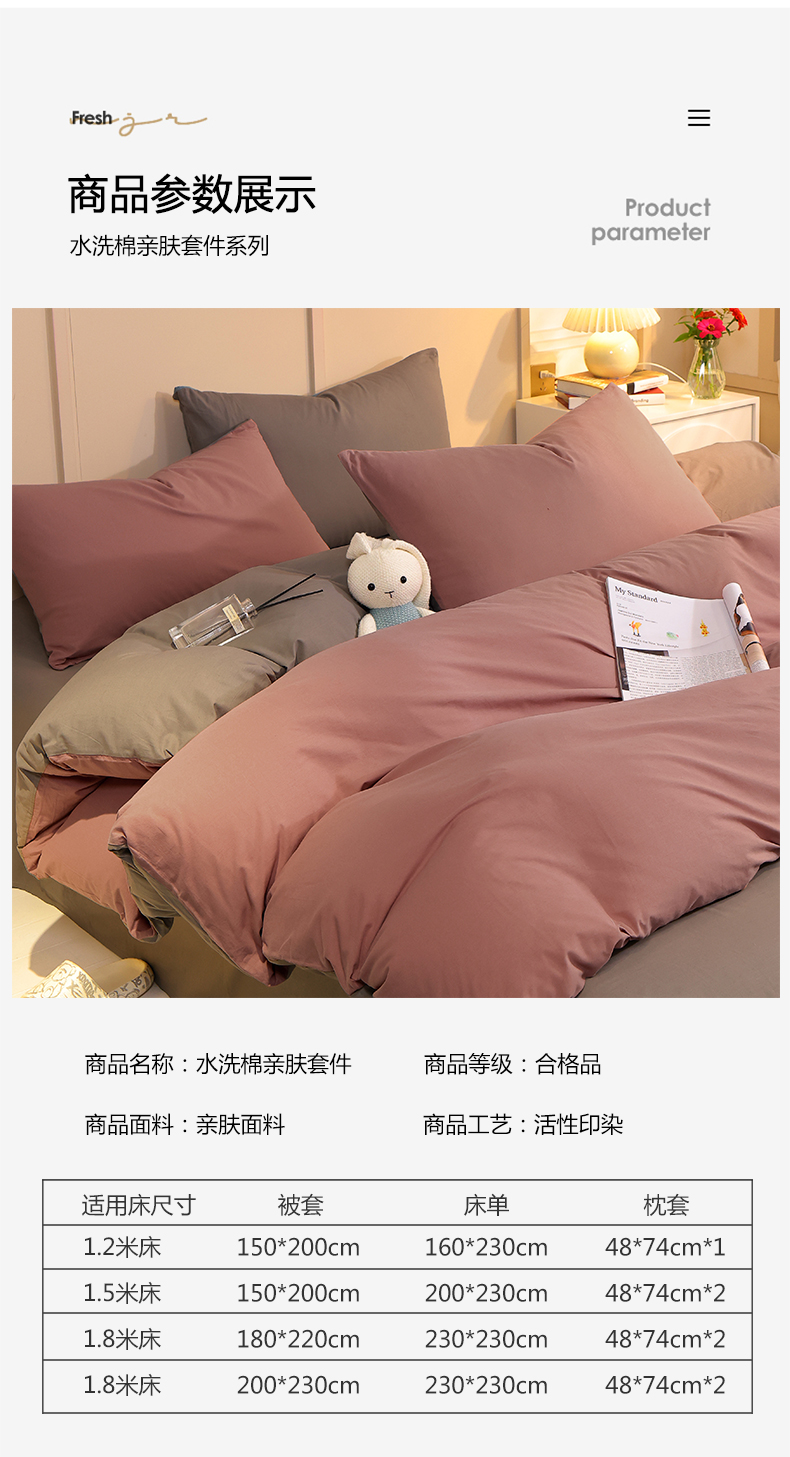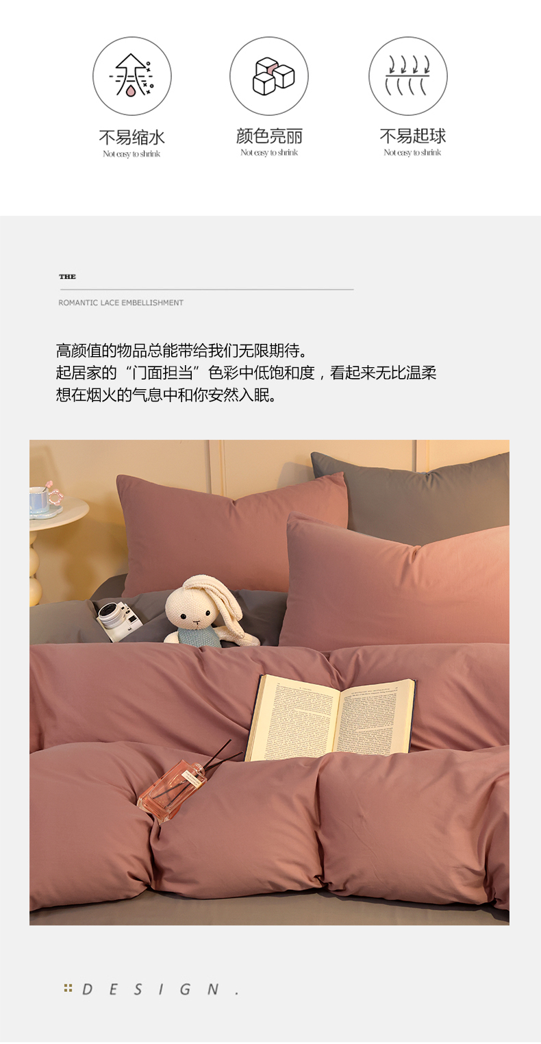 商品名称:悦织湾家纺 2025新款亲肤水洗棉纯色双拼四件套轻奢时尚 双拼豆沙+浅灰