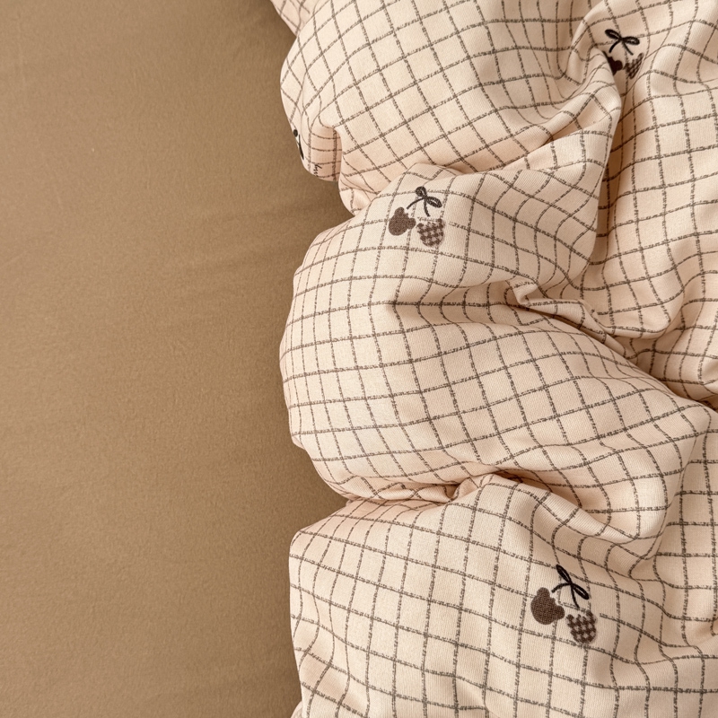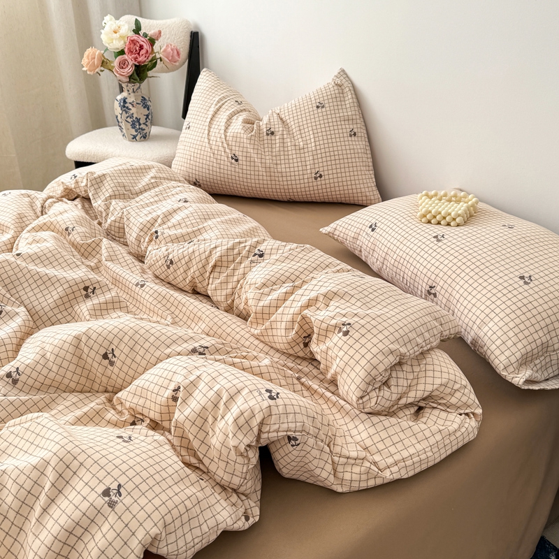 欧尚 2025新款有氧针织双层纱四件套 格子樱桃