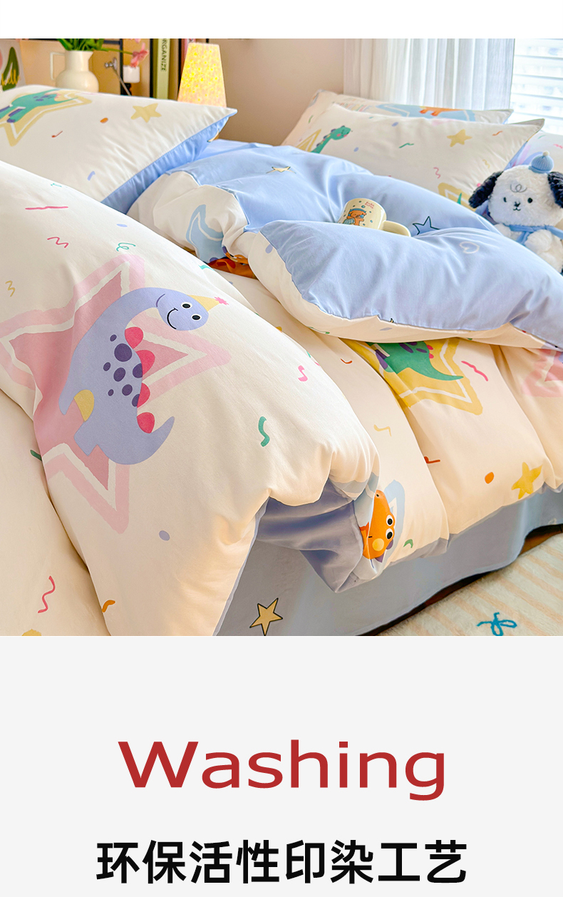 名兮家居 2025新款12868全棉纯棉四件套 星星恐龙