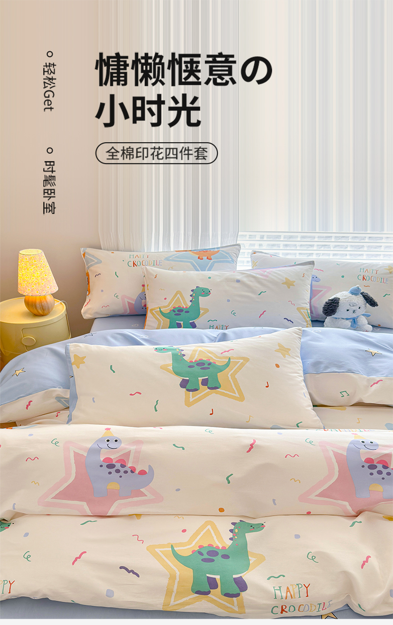 商品名称:名兮家居 2025新款12868全棉纯棉四件套 星星恐龙