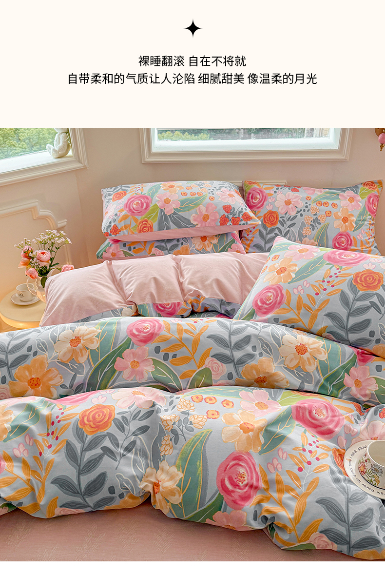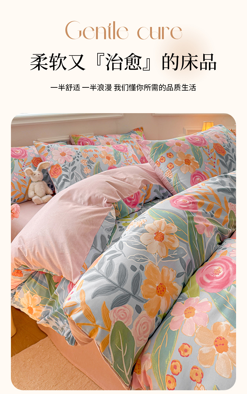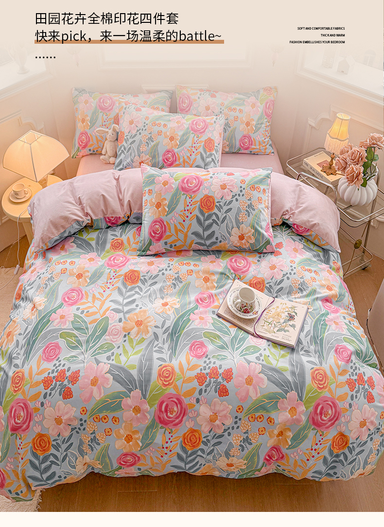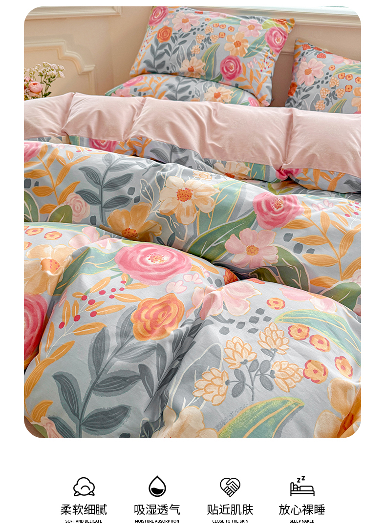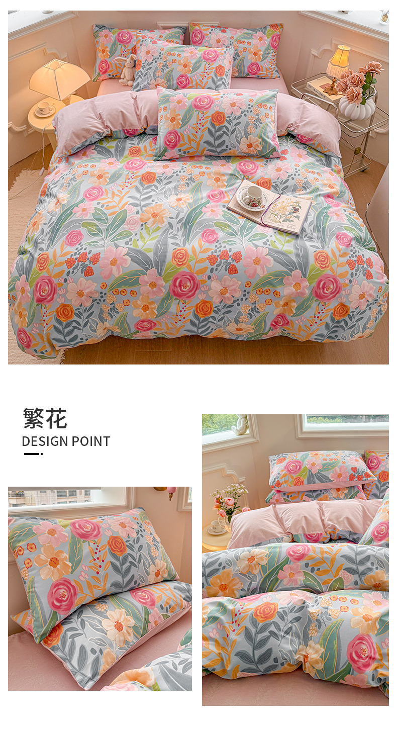 商品名称:名兮家居 2025新款13372全棉四件套-大花卉系列 繁花