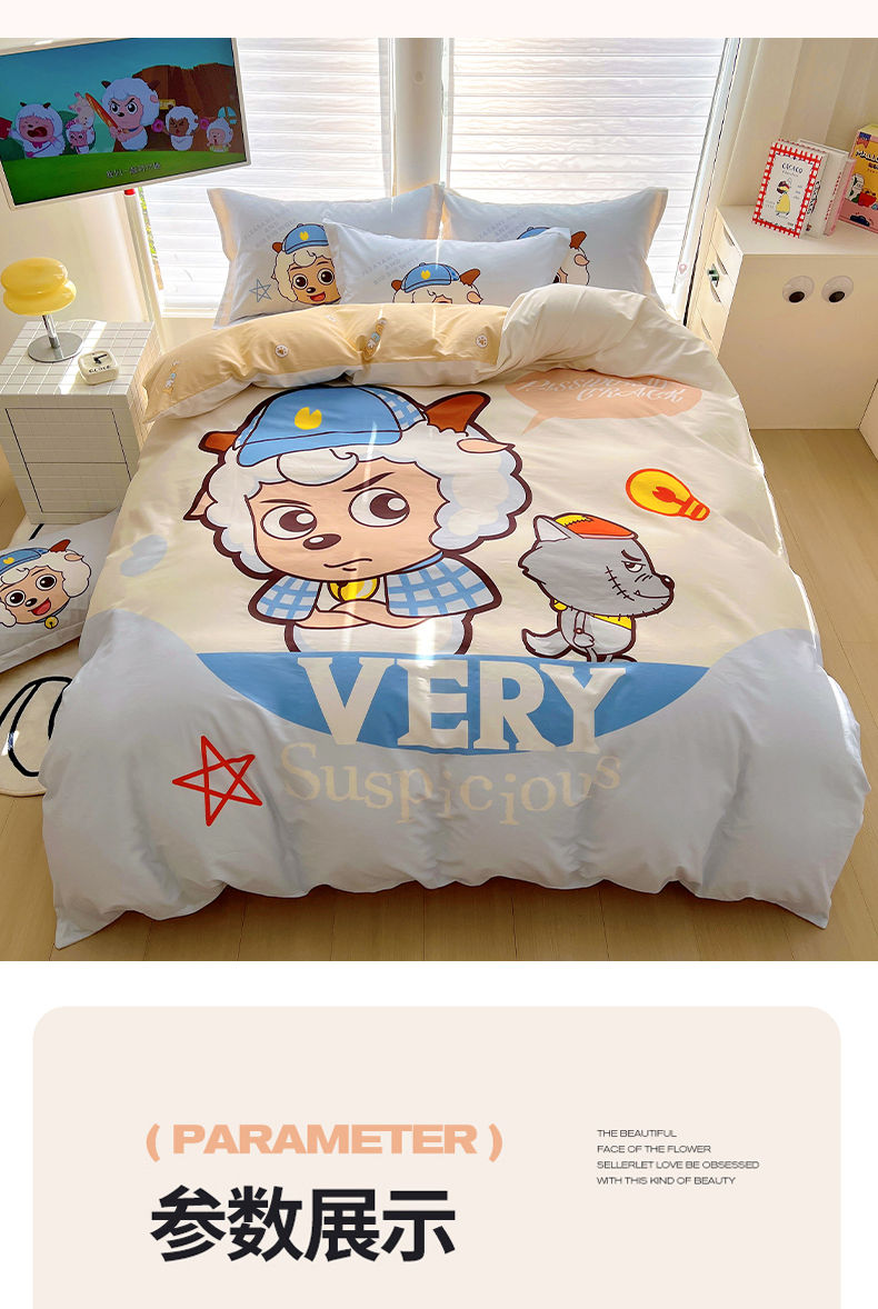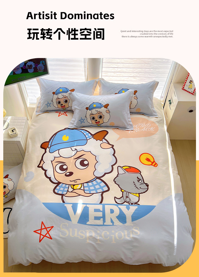 (总)浩诚 2025新款第二批正版喜羊羊灰太狼全棉卡通大版印花四件套-提供买家秀