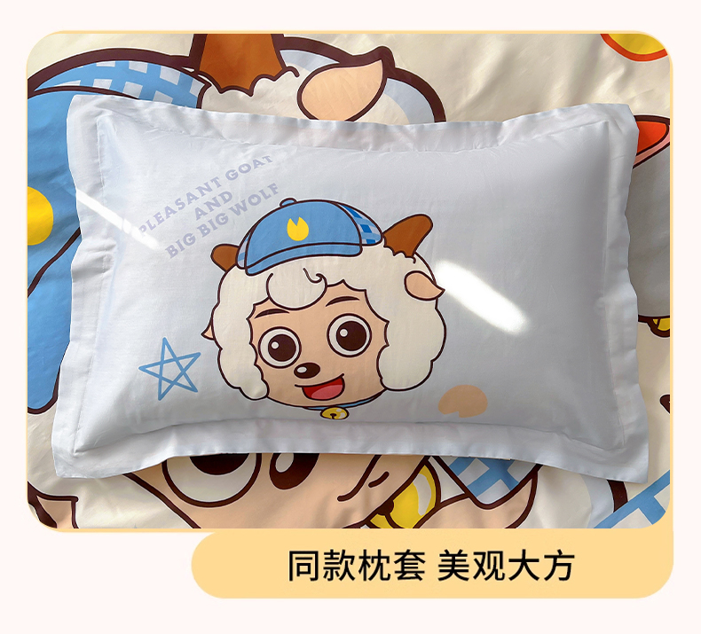 商品名称:(总)浩诚 2025新款第二批正版喜羊羊灰太狼全棉卡通大版印花四件套-提供买家秀
