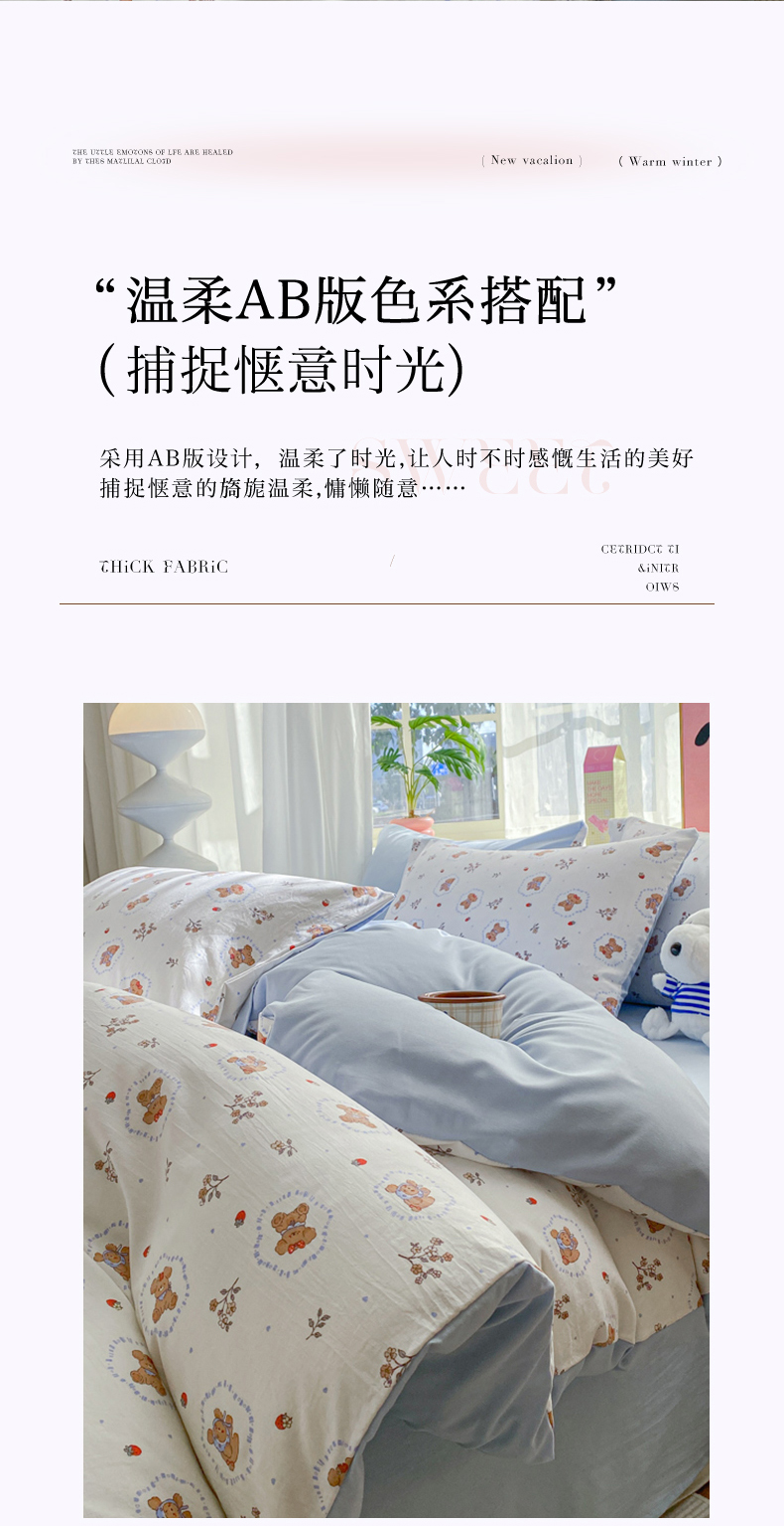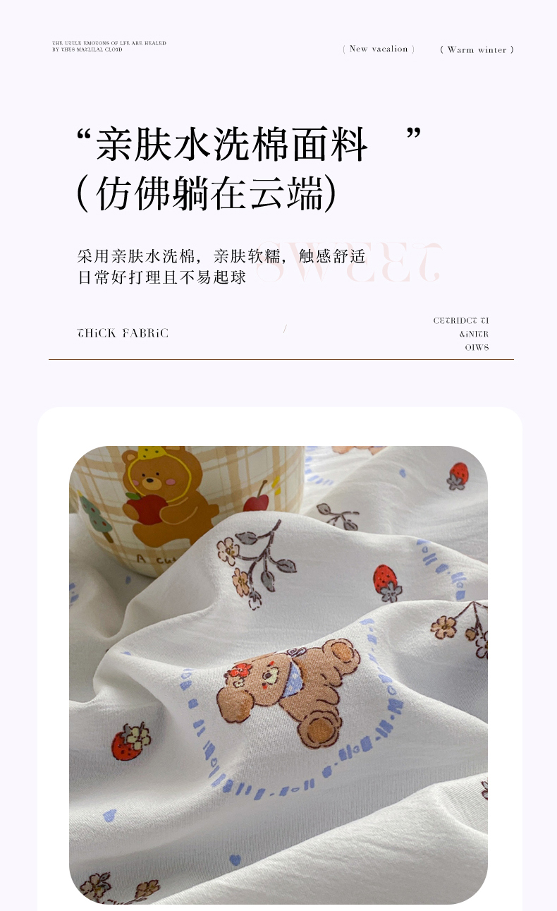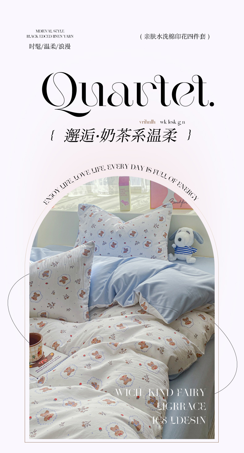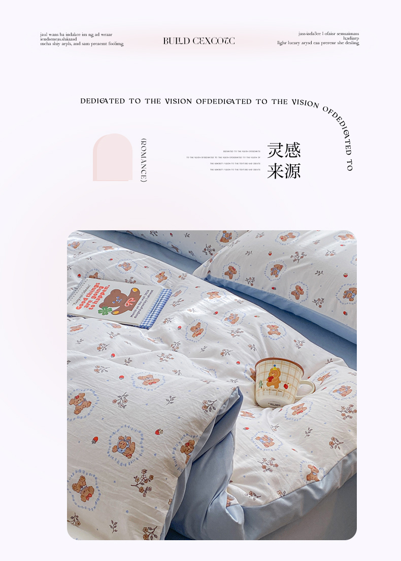 当前位置: 91家纺网 > 商品网购 > 床品套件 > 四件套 > 水洗棉四件套 > 2025新款高克重小碎花水洗棉四件套 小熊日记