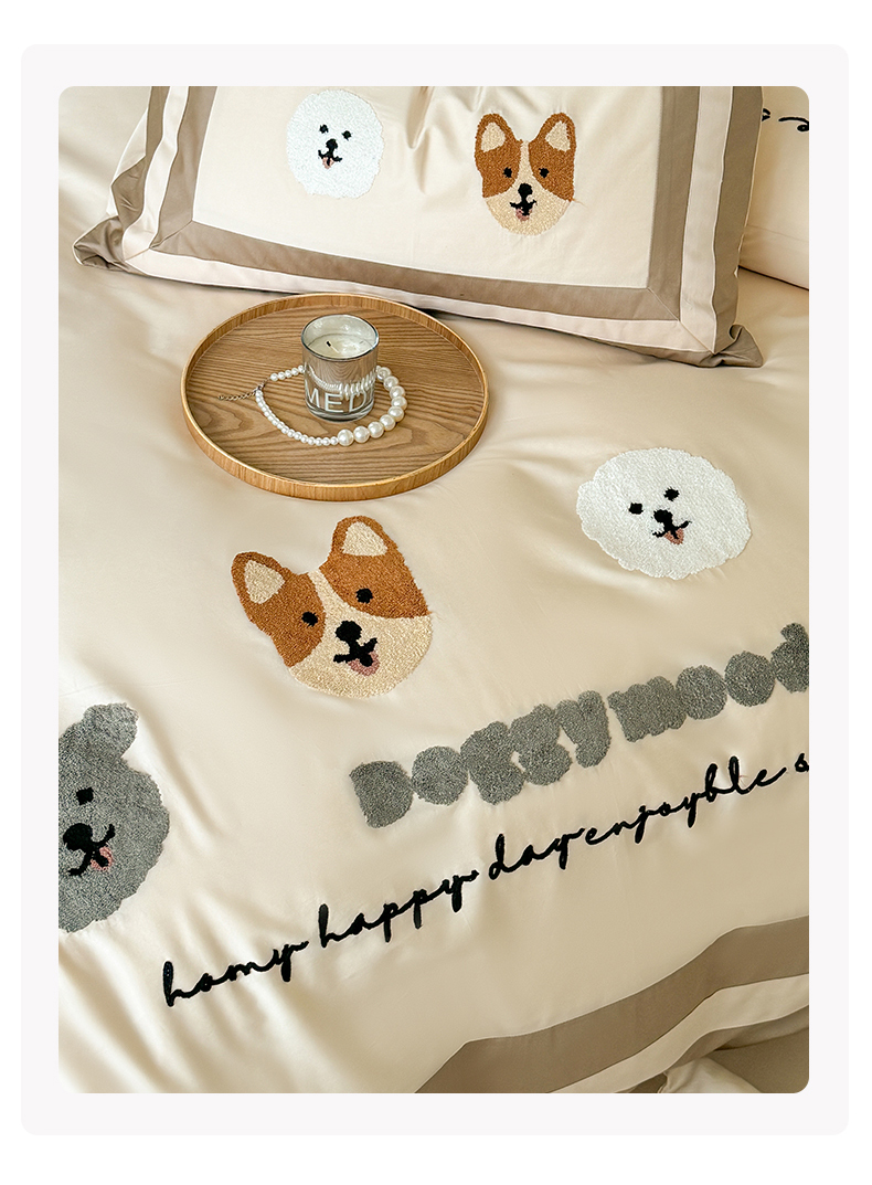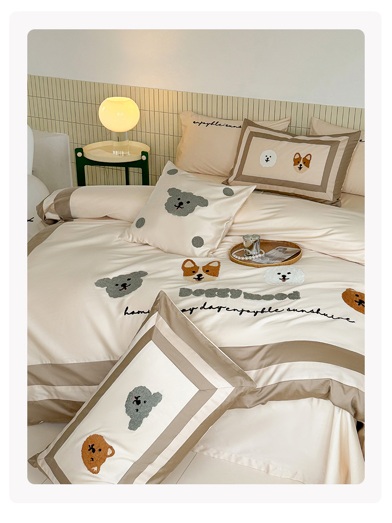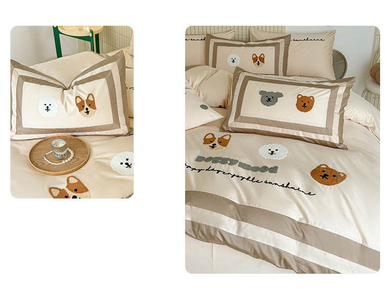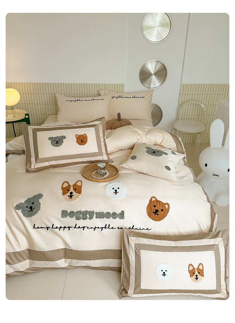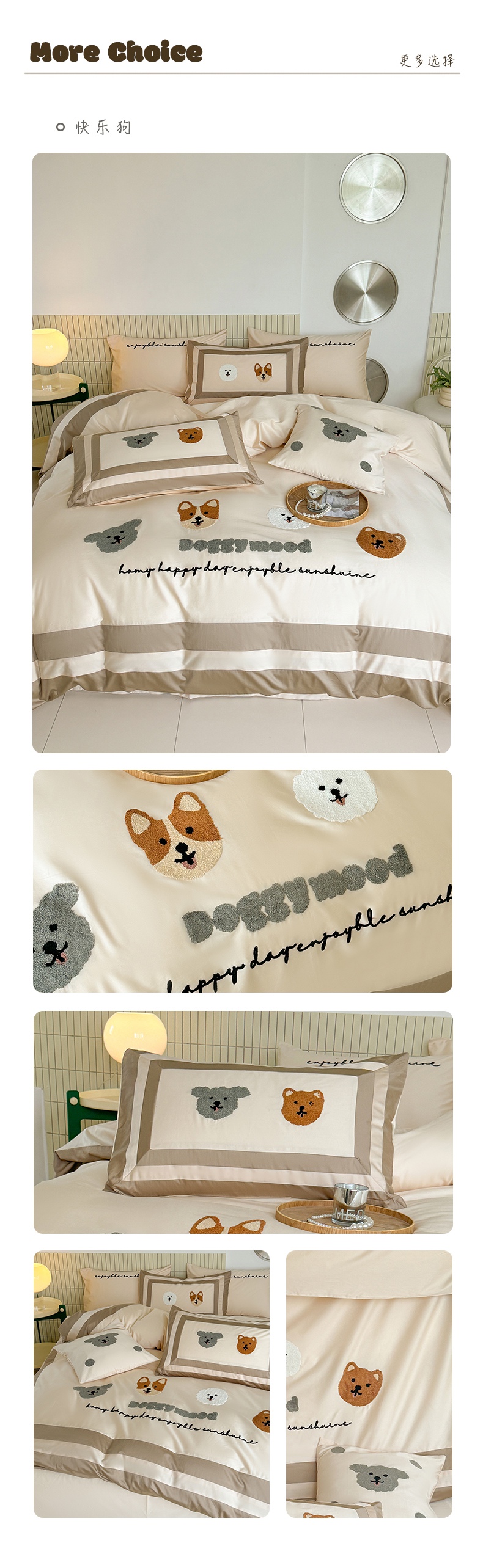 (买家秀 爆款花型不断货)纯棉四件套纯棉全棉四件套长绒棉刺绣四件套长绒棉四件套贡缎四件套毛巾绣四件套 波比--快乐狗