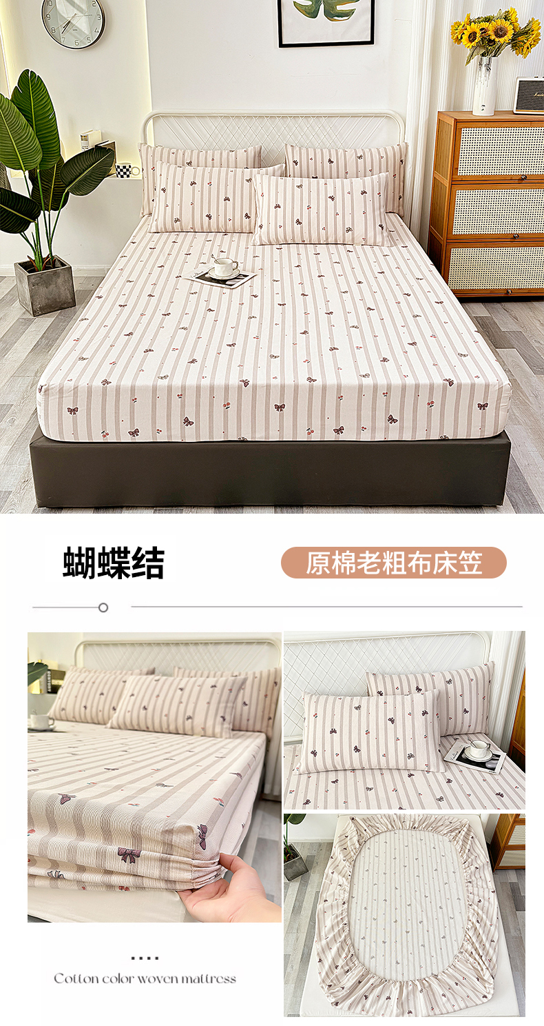 • 91家纺网 家纺一手货源 找家纺 伊而梦蚊帐 2025新款原棉老粗布床笠 蝴蝶结