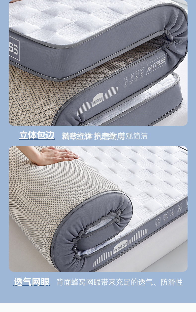 当前位置: 91家纺网 > 商品网购 > 床垫/床褥 > 普通床垫 > 暖季家纺 2025新款立体海绵成人系列床垫 海绵款-立体灰泡芙格白