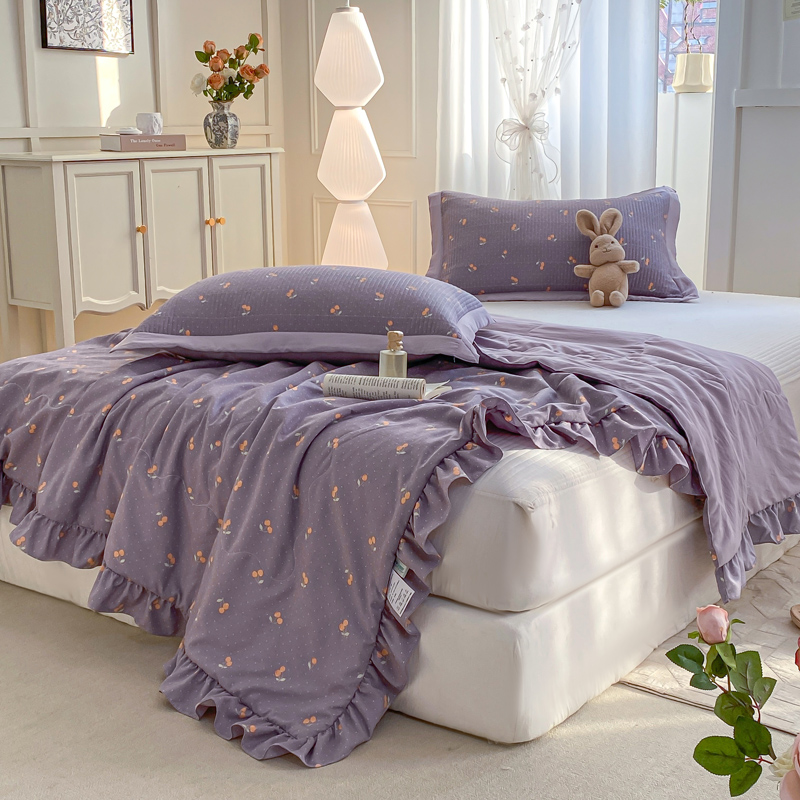 享受云端的柔软,是霎那间的心动~ 面料超软糯、、绗缝设计不易跑棉,贴身柔软又舒适,告别床单的褶皱与烦恼,法式小碎花。享受视觉的美感。沉浸式的入睡,仿佛进了森林氧吧。采用整张超细中空纤维棉 久用不板结 无甲醛,无芳香胺。婴幼儿可用