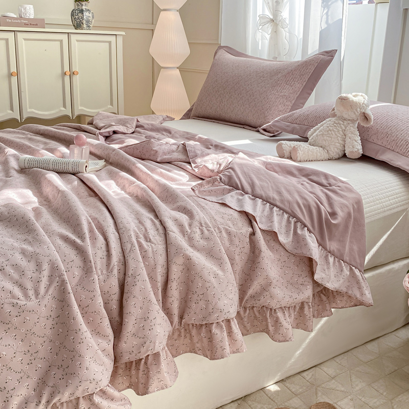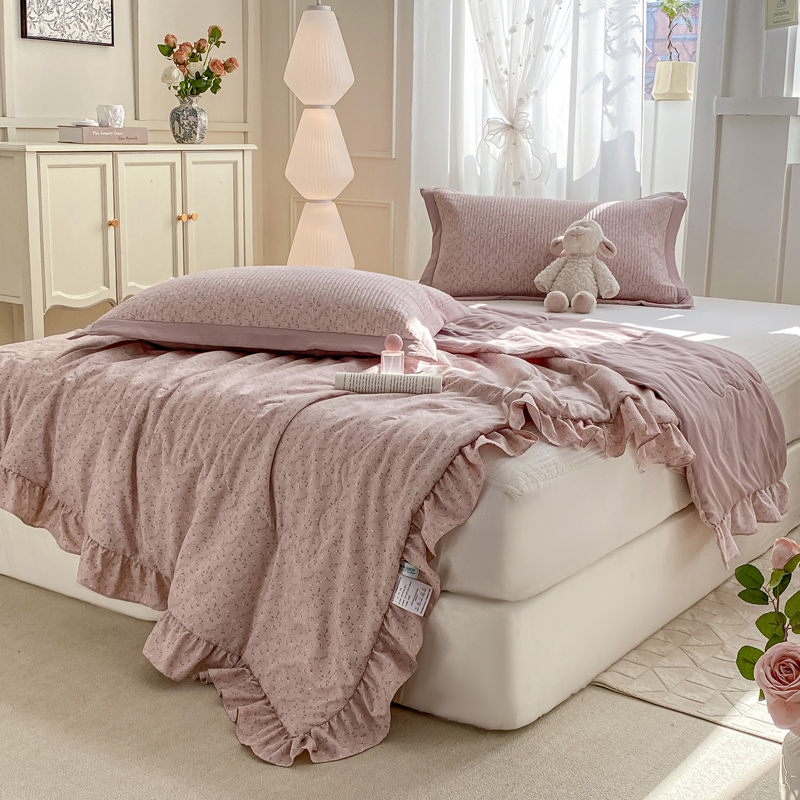 享受云端的柔软,是霎那间的心动~ 面料超软糯、、绗缝设计不易跑棉,贴身柔软又舒适,告别床单的褶皱与烦恼,法式小碎花。享受视觉的美感。沉浸式的入睡,仿佛进了森林氧吧。采用整张超细中空纤维棉 久用不板结 无甲醛,无芳香胺。婴幼儿可用