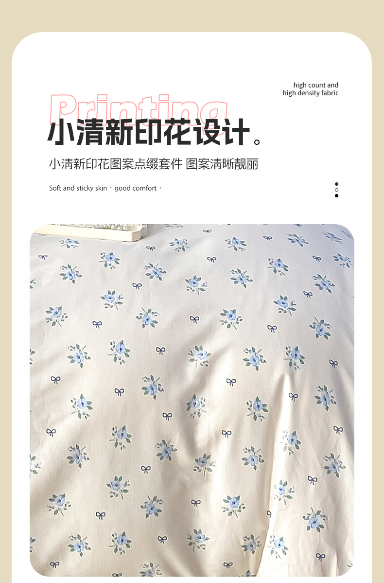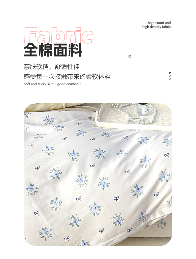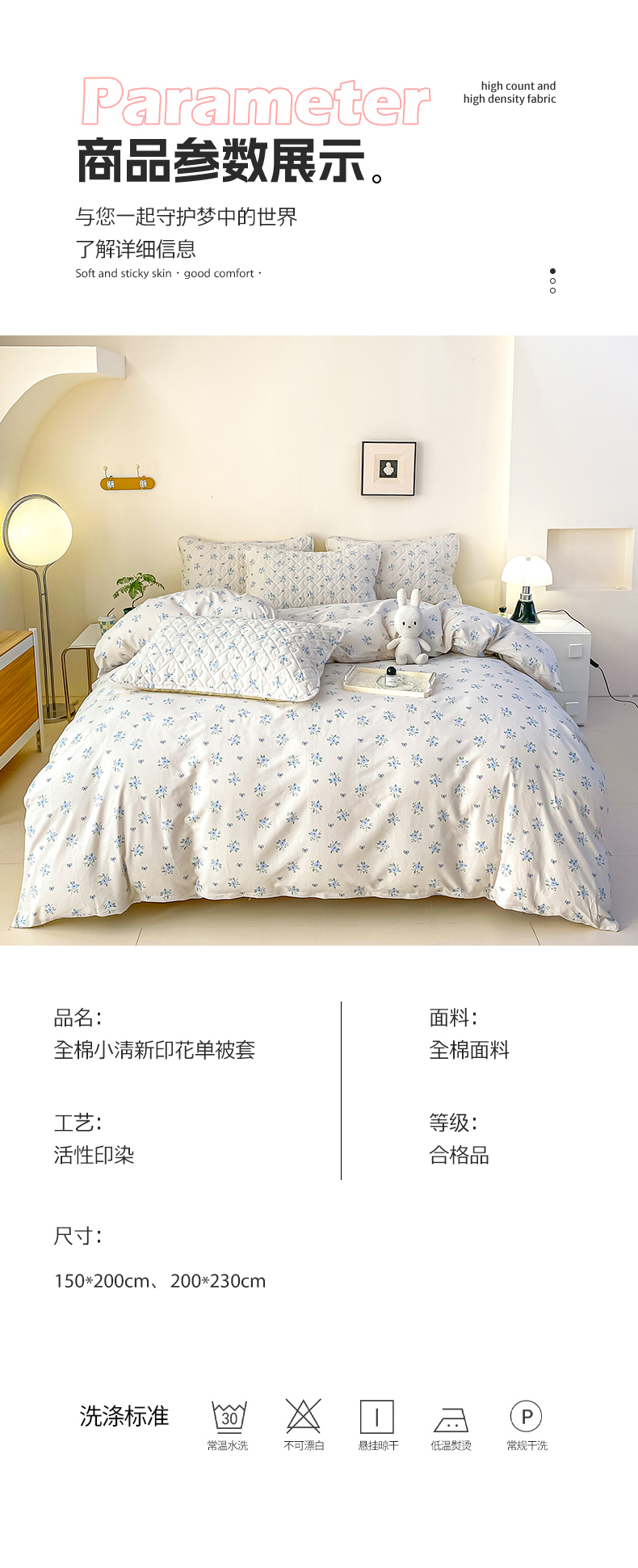 禧缘家纺 2025新款全棉小清新印花单被套 蓝色花园