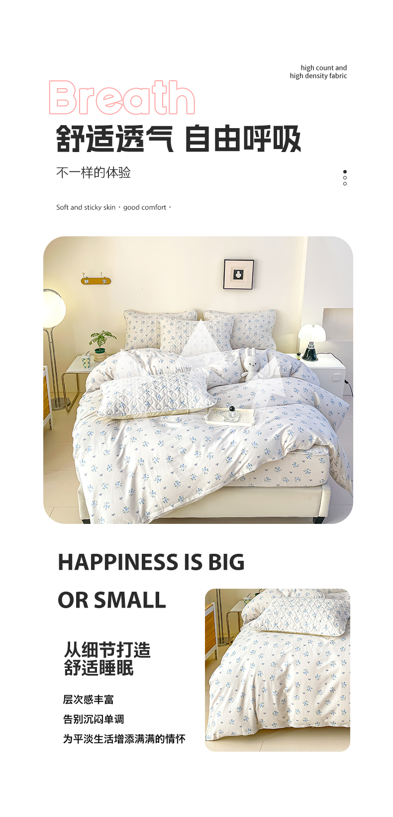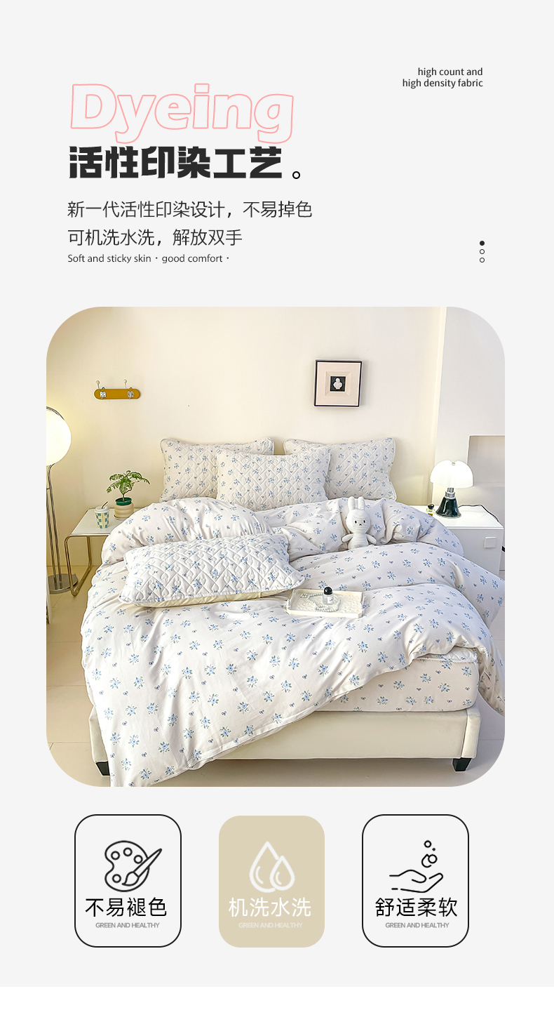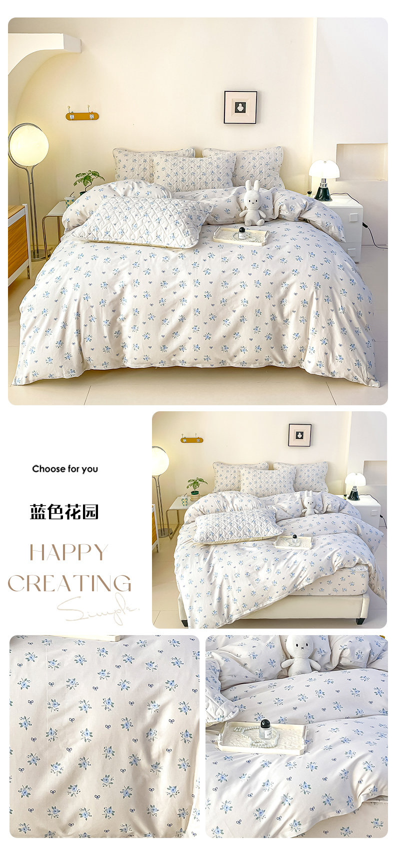 禧缘家纺 2025新款全棉小清新印花单被套 蓝色花园