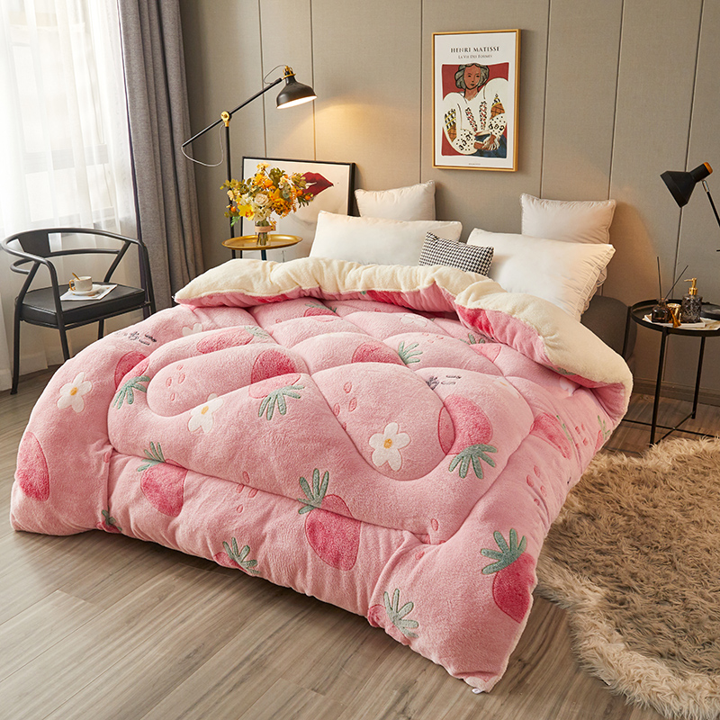 商品名称:买家秀 爆款花色不断货)A类母婴级羊羔绒被子被芯牛奶绒被子被芯春秋被秋冬被雪花绒冬被被芯牛奶绒冬被 甜心草莓