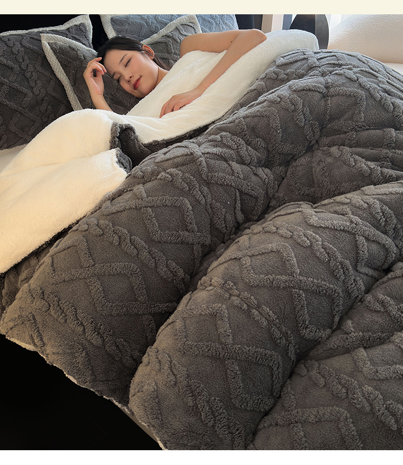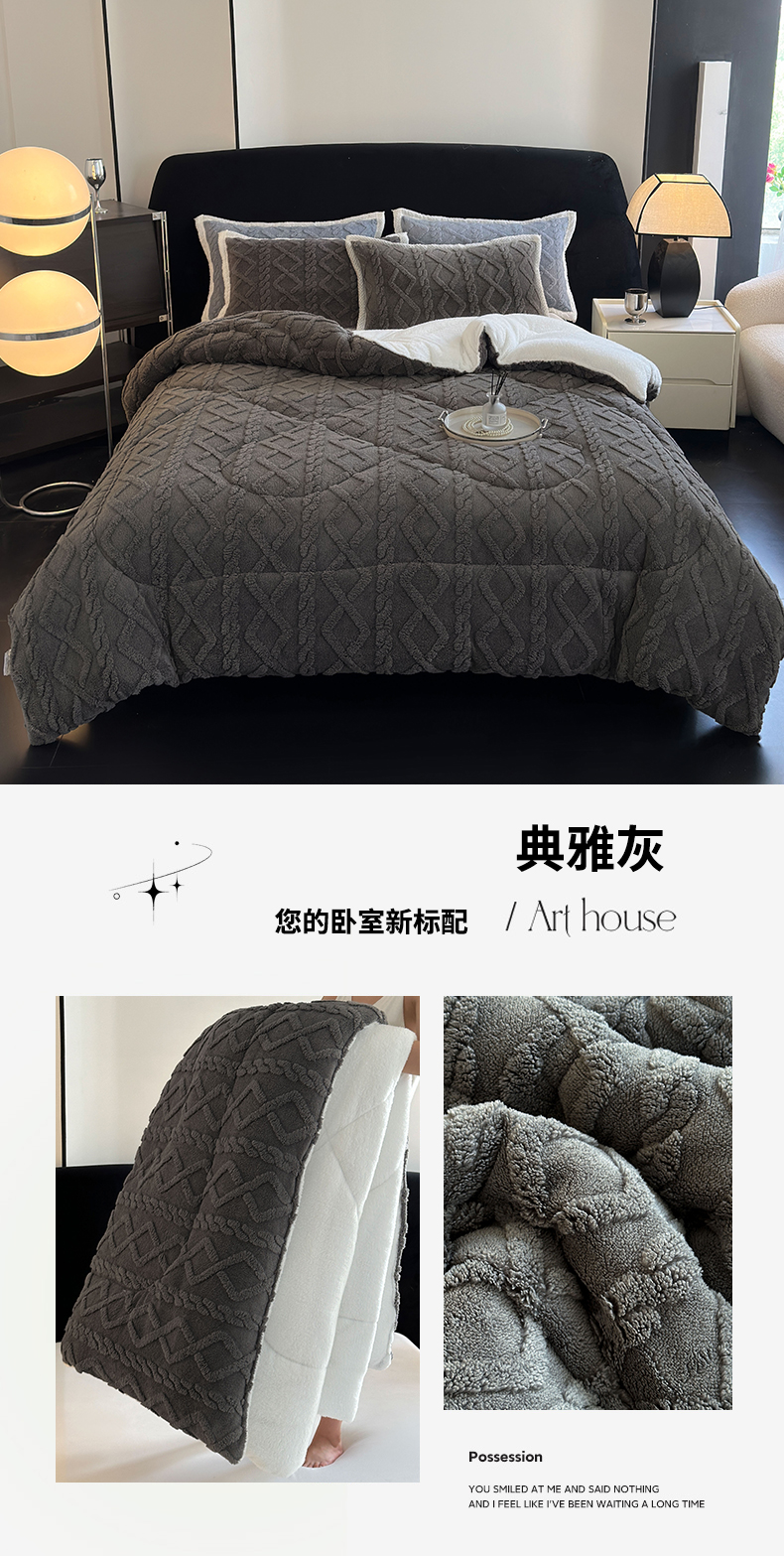买家秀 爆款不断货A类羊羔绒被子被芯牛奶绒被子被芯春秋被秋冬被塔芙绒被子被芯雪花绒被子北极绒冬被 AB版-典雅灰