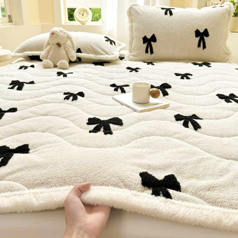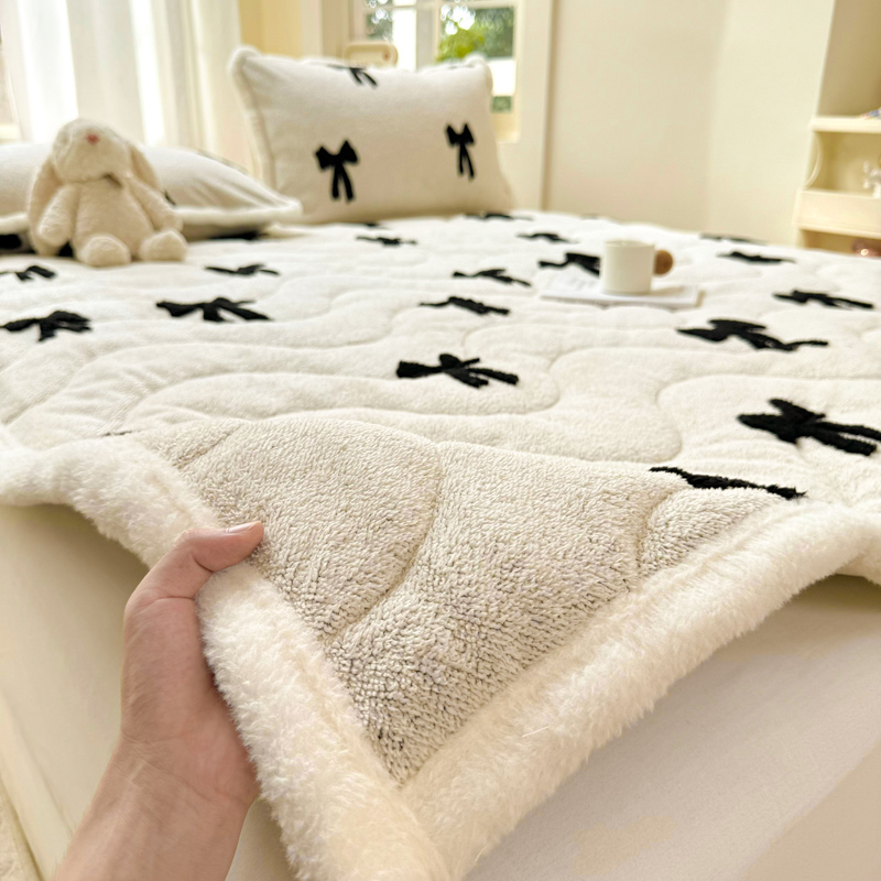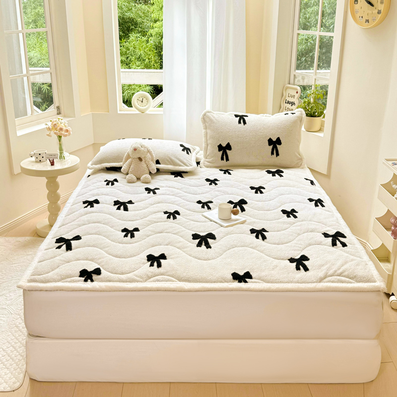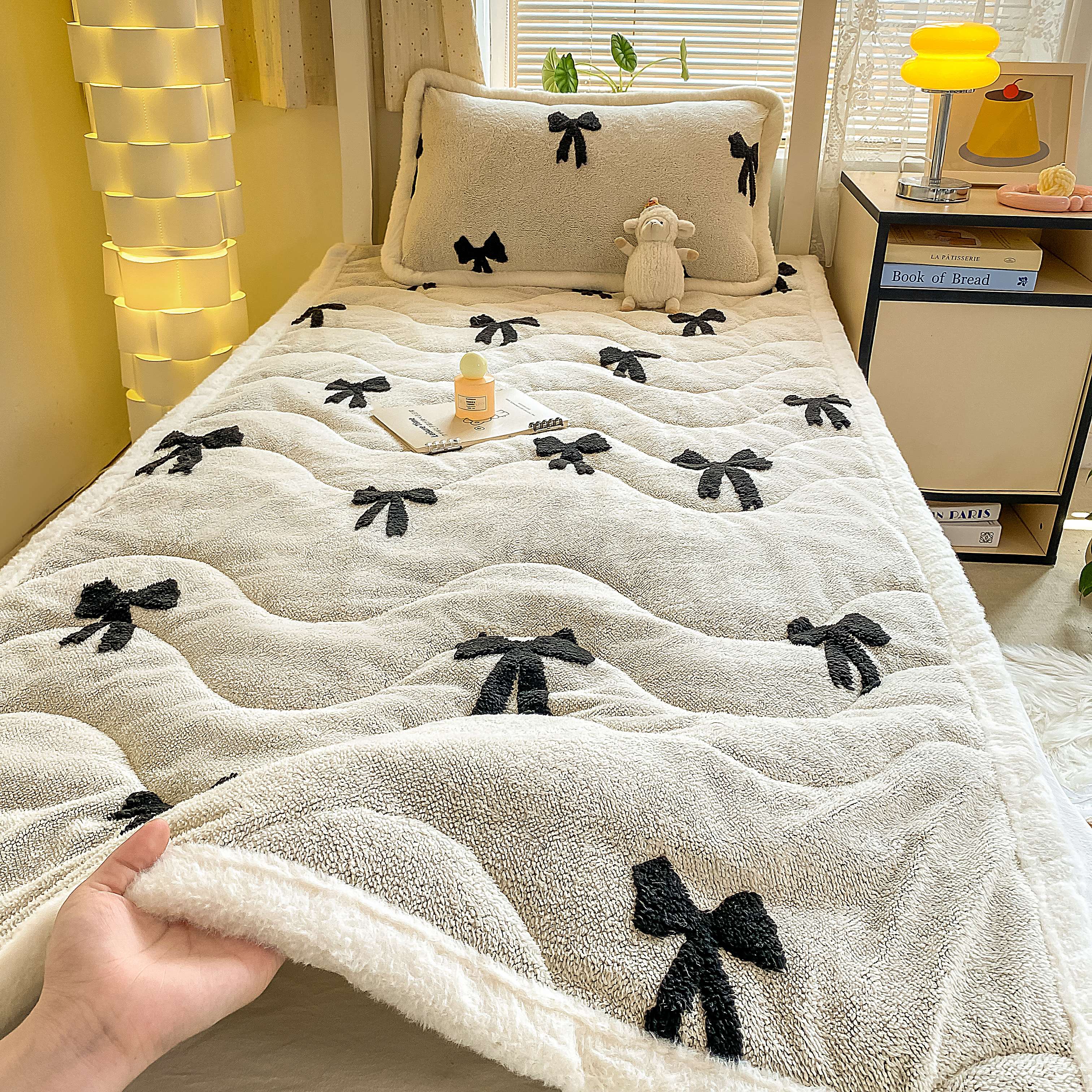商品名称:(买家秀 爆款不断货)A类母婴级毛巾绣牛奶绒床垫子刺绣牛奶绒床护垫床褥子雪花绒毛巾绣床垫床褥-学生款 蝴蝶结-米