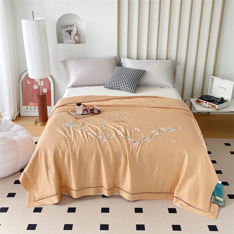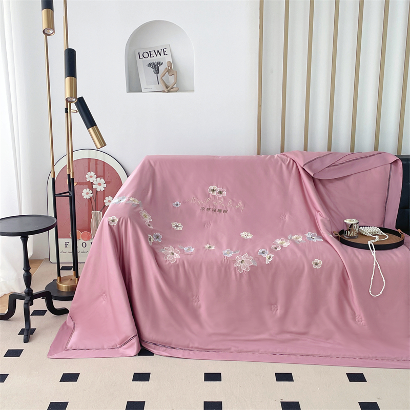(总)优姿家纺 2025新款60S天丝绣花镂空夏被1,粉色,灰色,蓝色,橘色,黄色,浅绿色,肉粉色