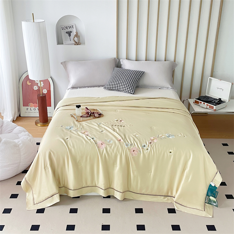 (总)优姿家纺 2025新款60S天丝绣花镂空夏被3,粉色,黄色,灰色,肉粉色,蓝色,浅绿色,黄色