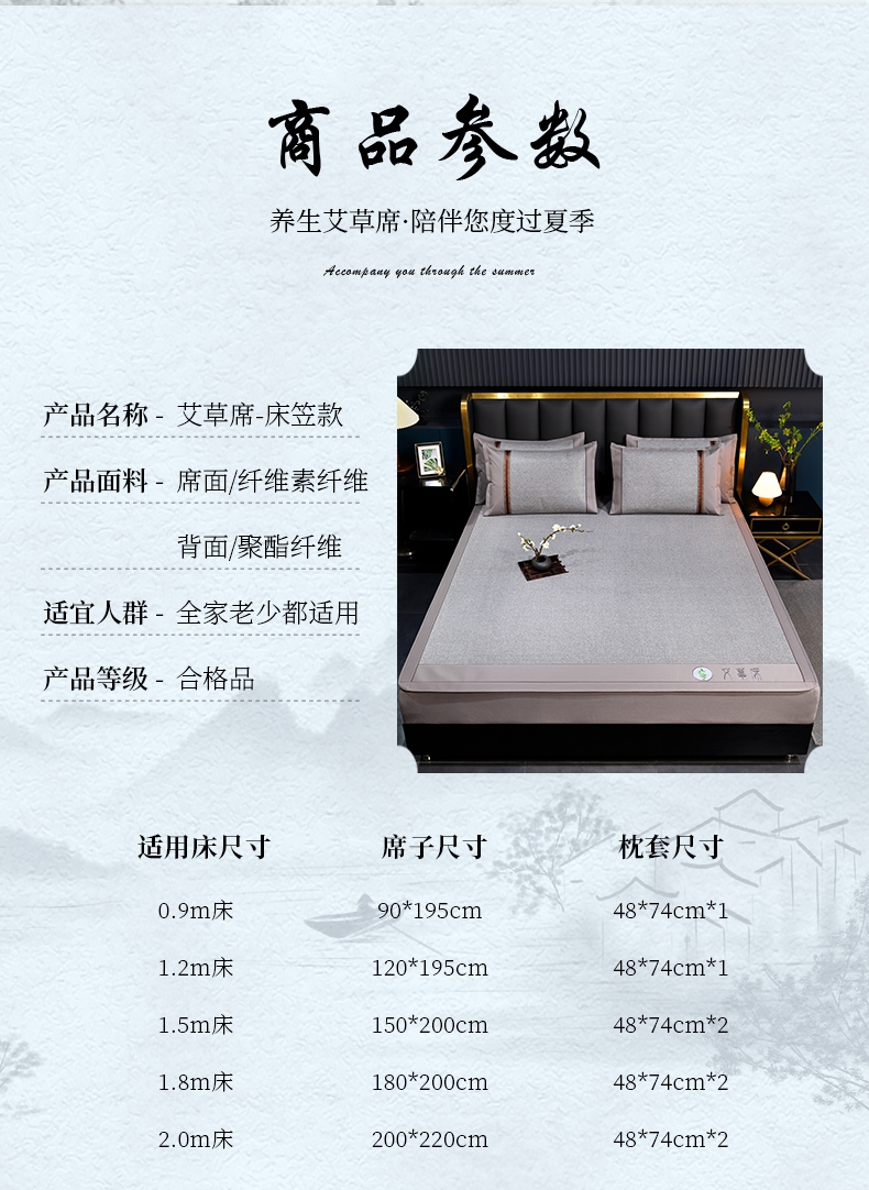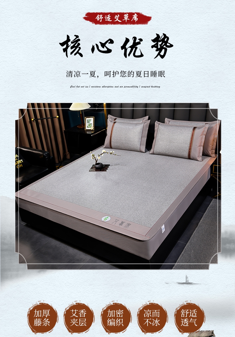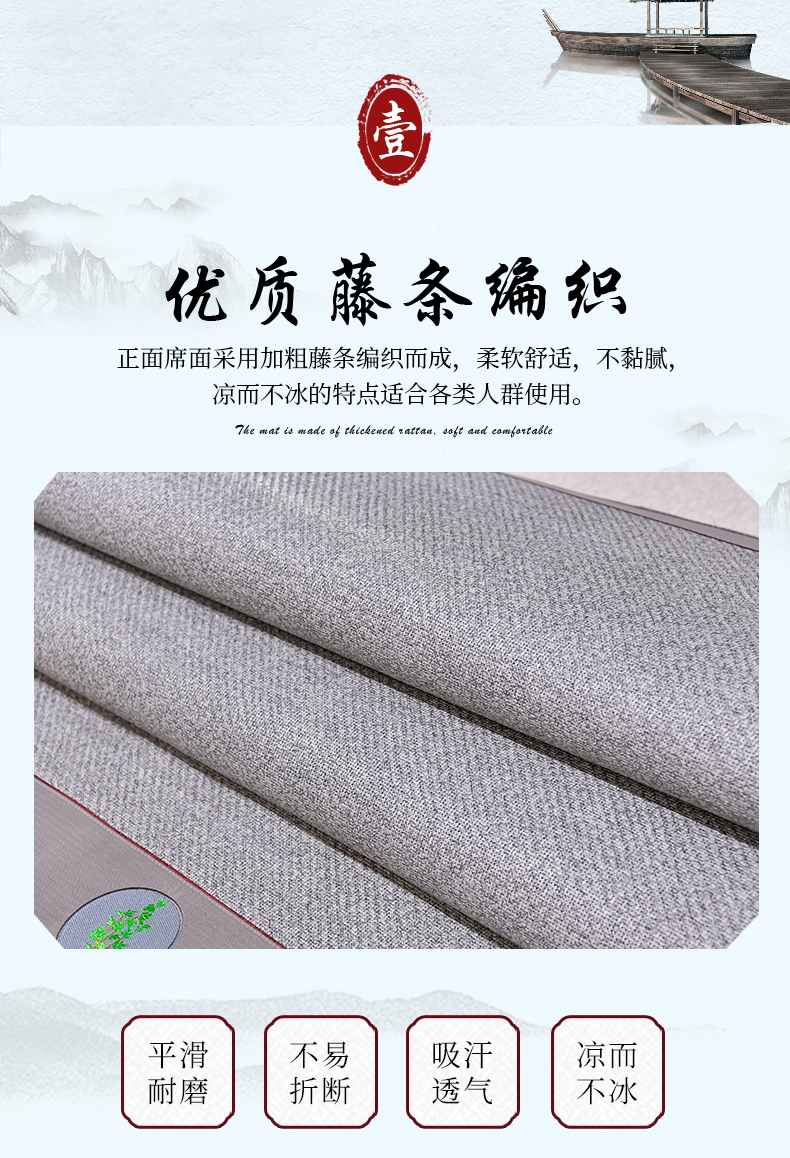 当前位置: 91家纺网 > 商品网购 > 床上用品 > 凉席 > 藤席 > 小牛席业 2025新款加厚款-经典艾草养生席(床笠款)凉席藤席冰藤席冰丝席竹席草席空调席乳胶席豆豆席 艾草养生席-床笠款-灰色