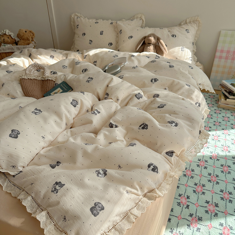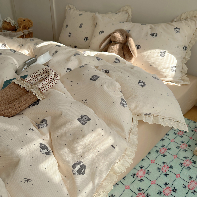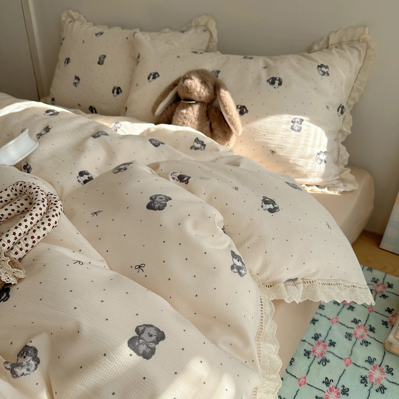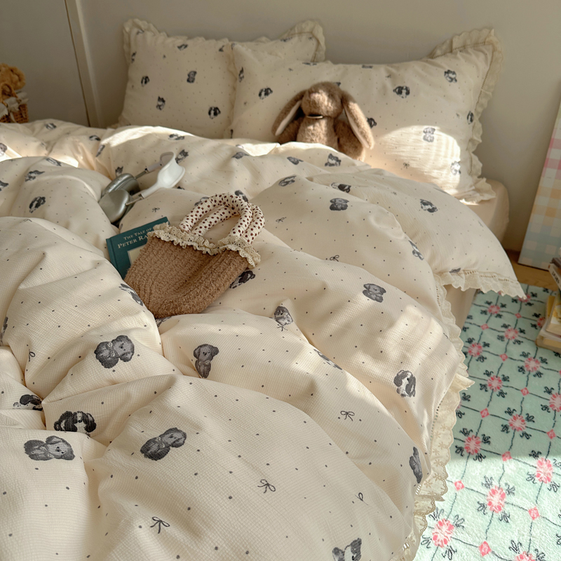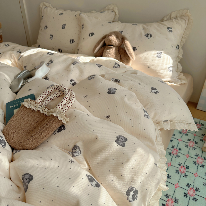 2025新款春日碎花云朵泡泡纱花边套件 复古萌宠