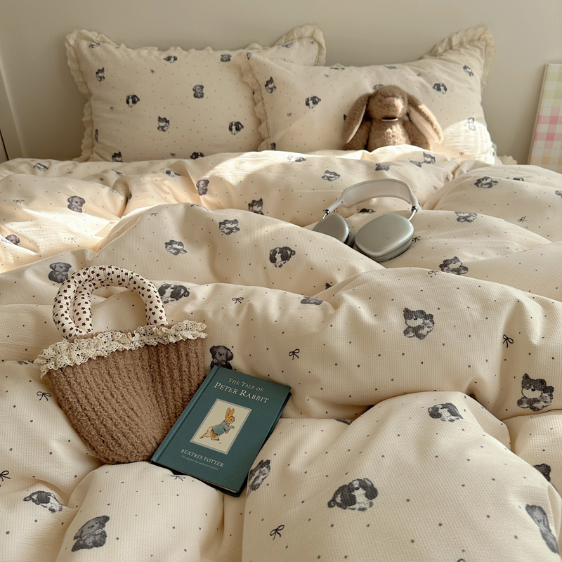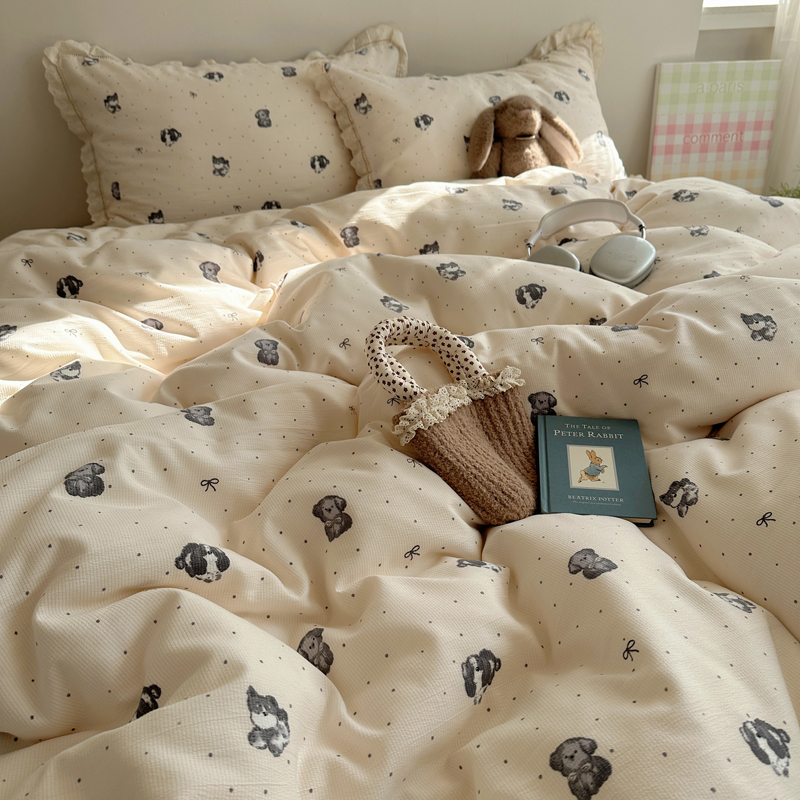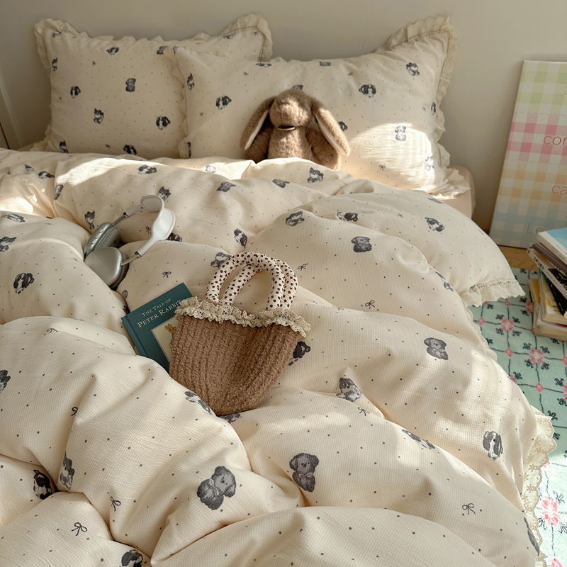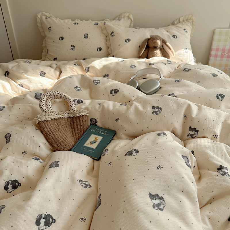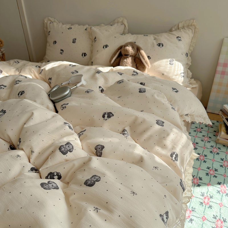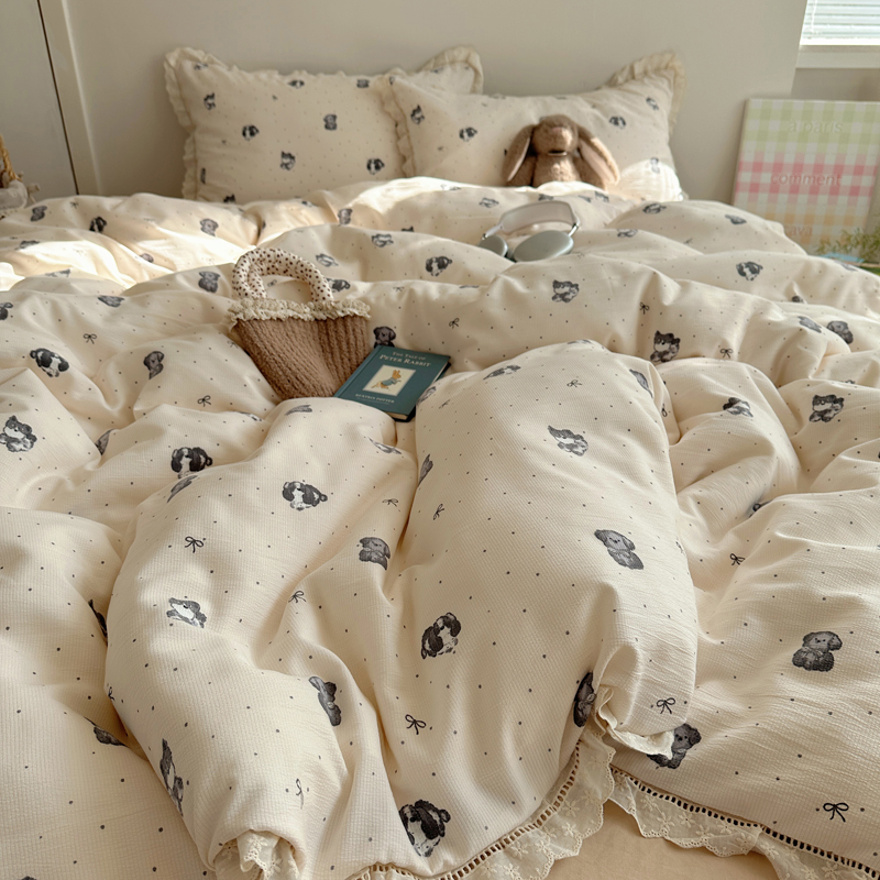 2025新款春日碎花云朵泡泡纱花边套件 复古萌宠
