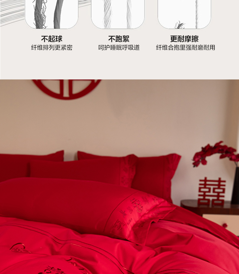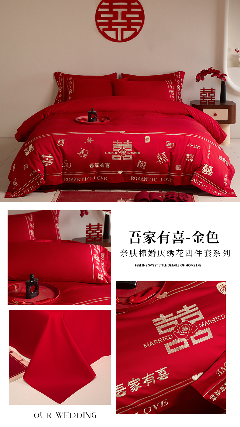 (总)苏源家居 2025新款 大红婚庆结婚喜庆刺绣轻奢四件套-吾家有喜系列,吾家有喜-红色,吾家有喜-金色