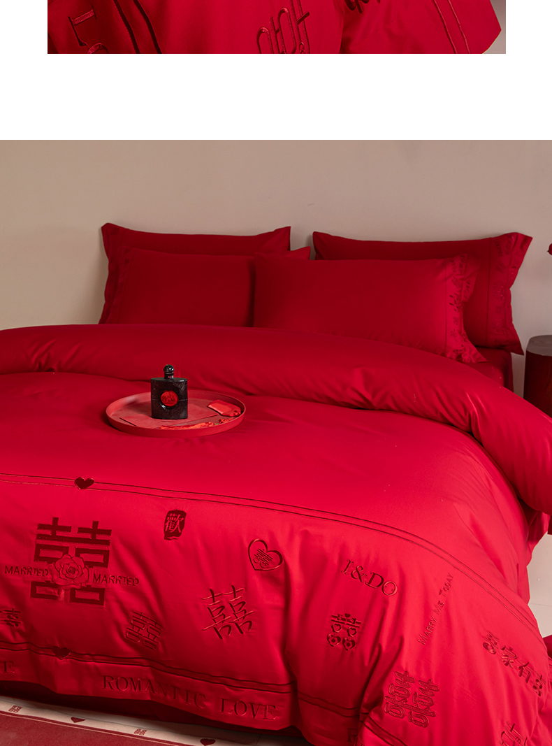 商品名称:(总)苏源家居 2025新款 大红婚庆结婚喜庆刺绣轻奢四件套-吾家有喜系列