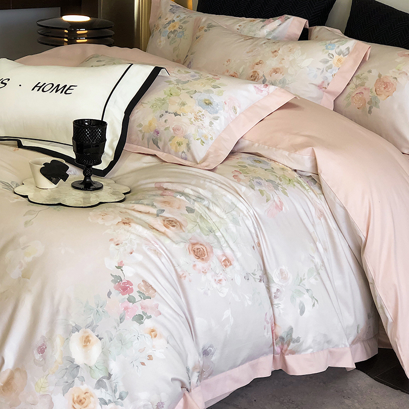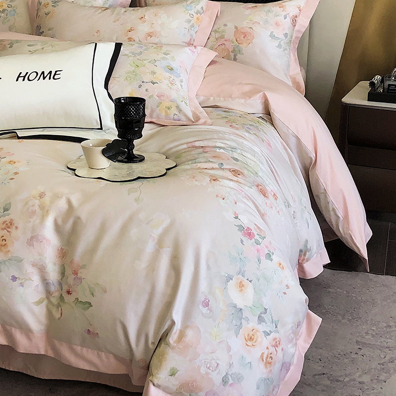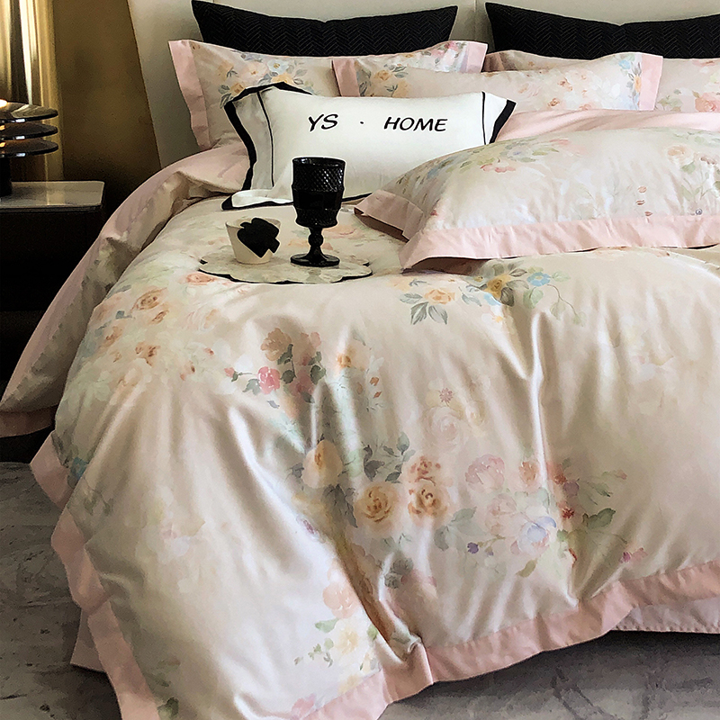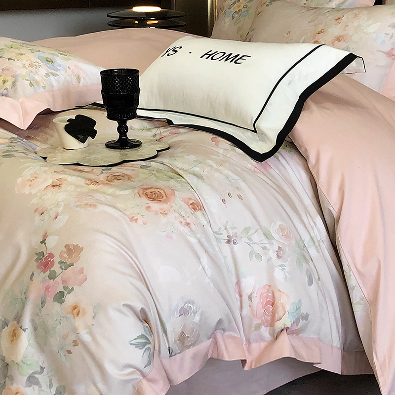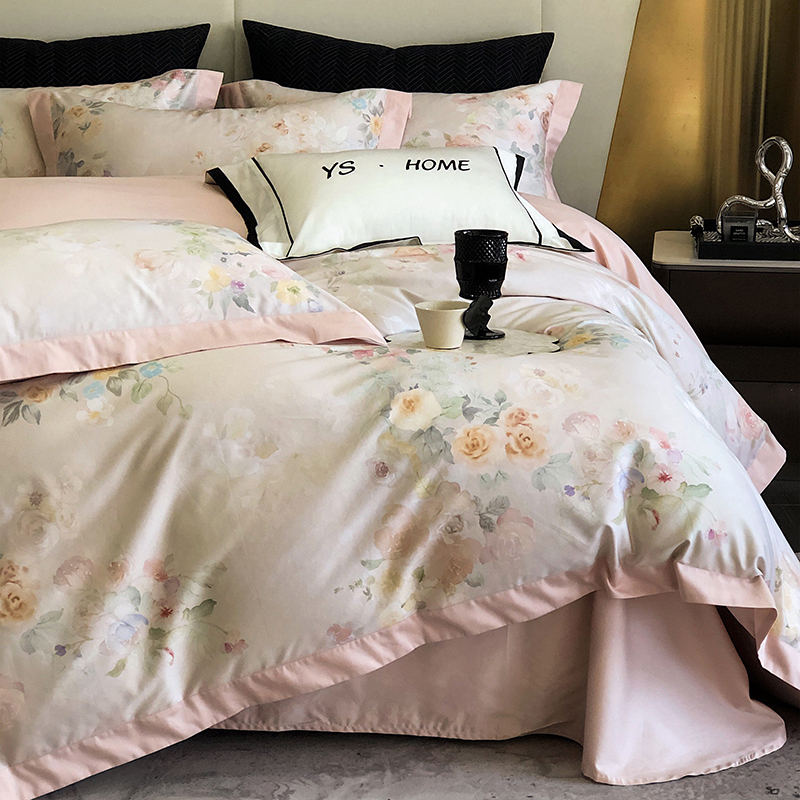 薏思家纺 2025新款100支长绒棉数码印花飞边款四件套 拉菲尔