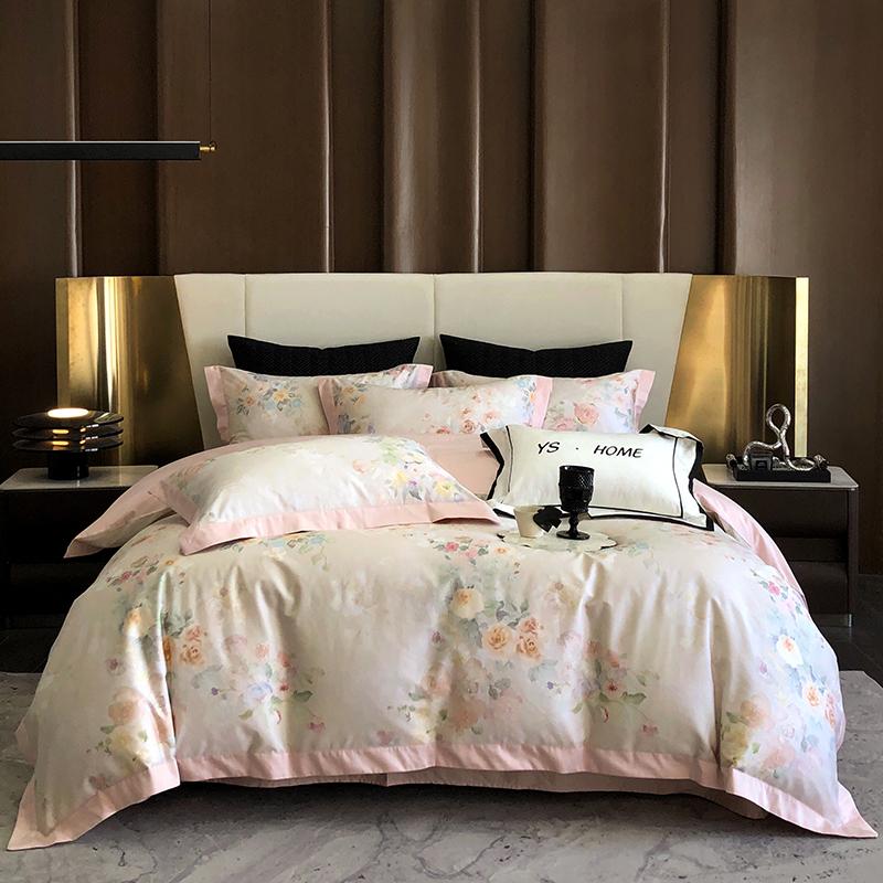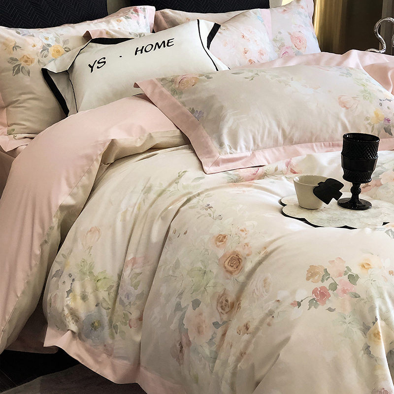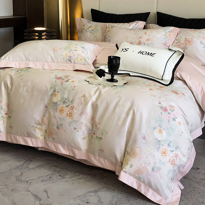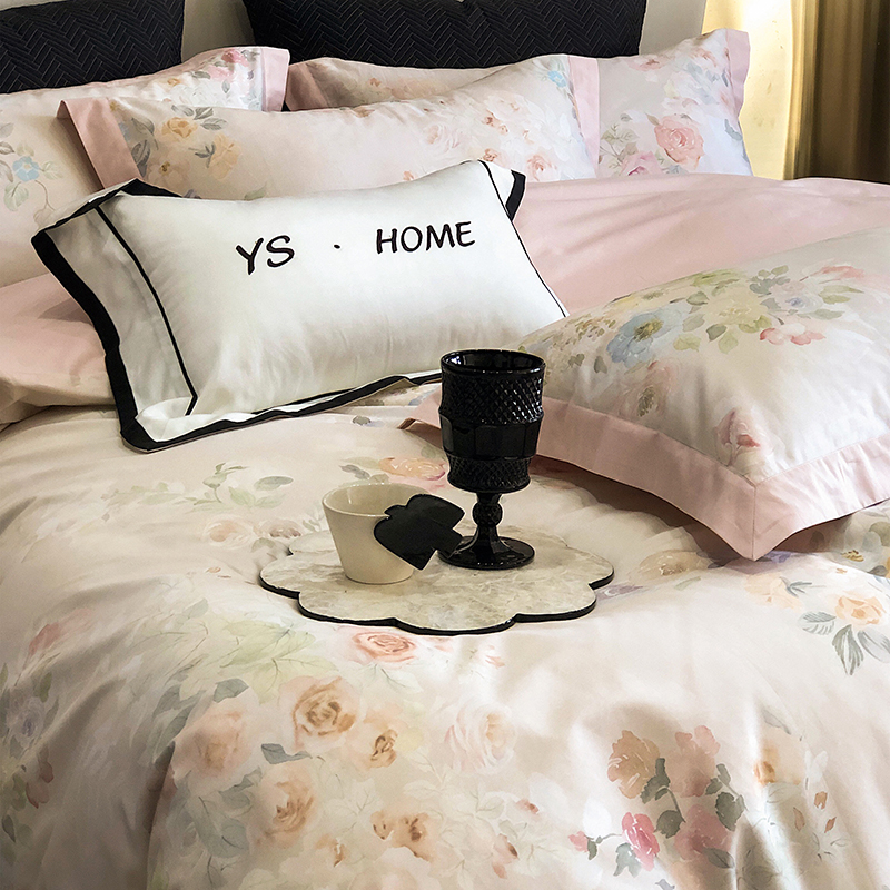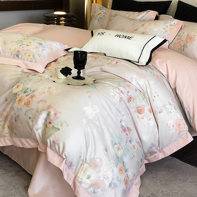商品名称:薏思家纺 2025新款100支长绒棉数码印花飞边款四件套 拉菲尔