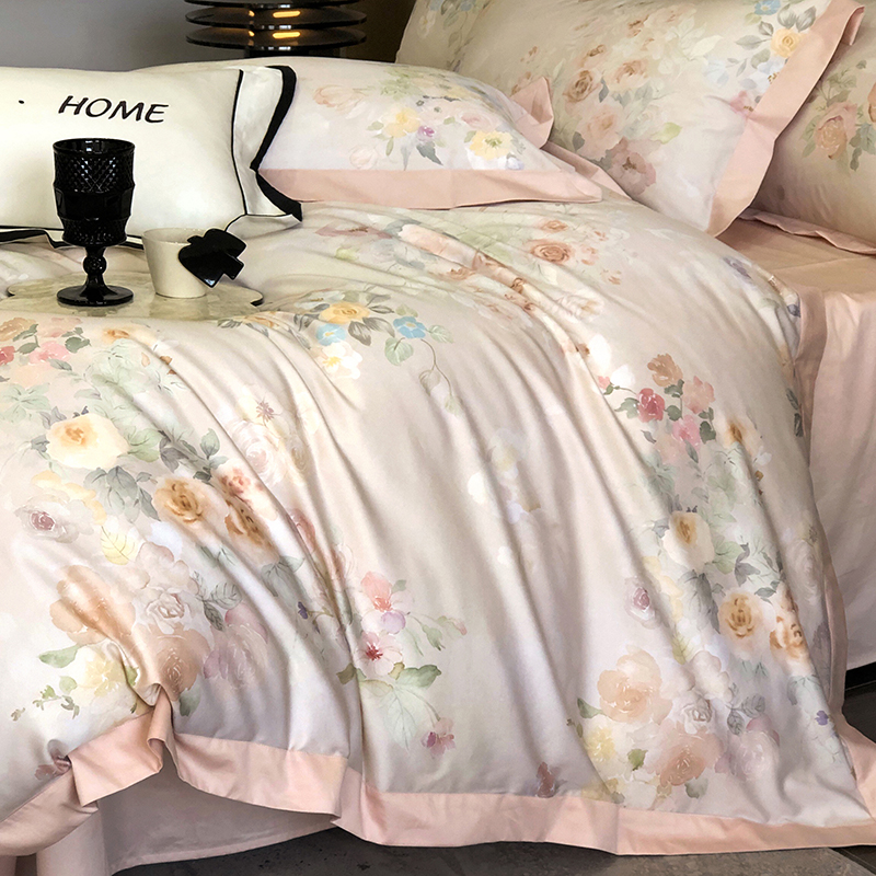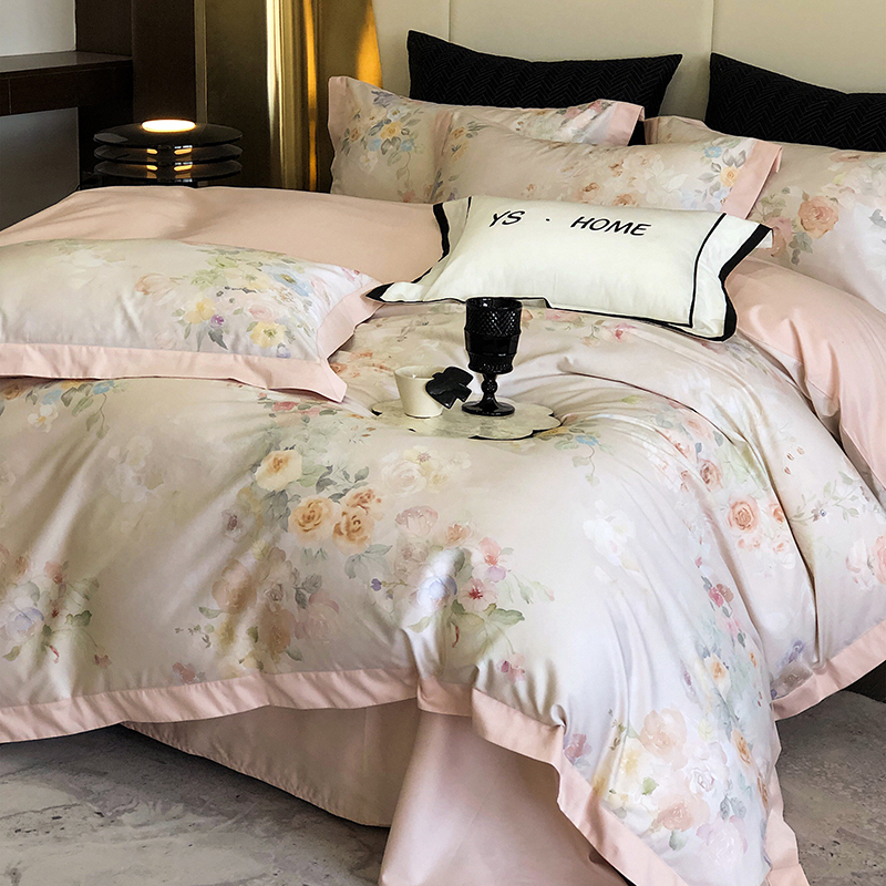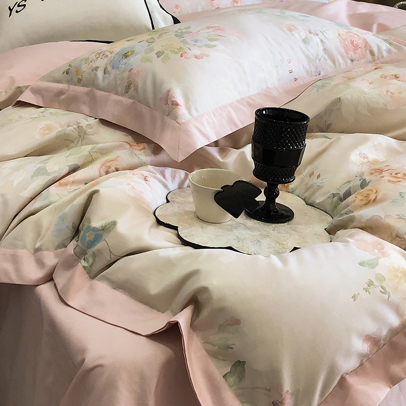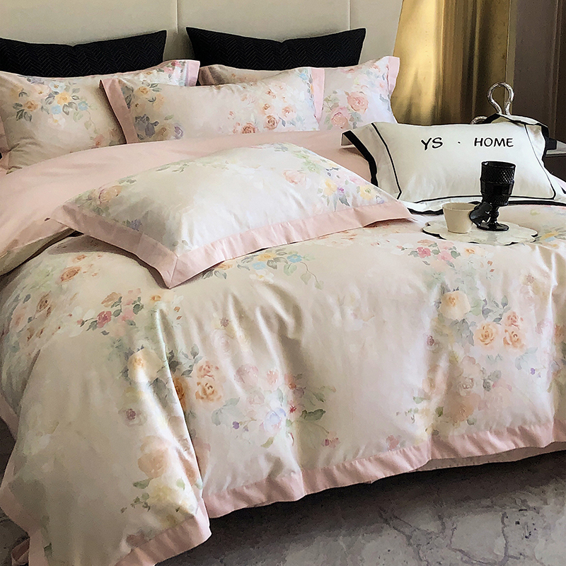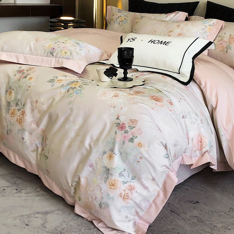 商品名称:薏思家纺 2025新款100支长绒棉数码印花飞边款四件套 拉菲尔
