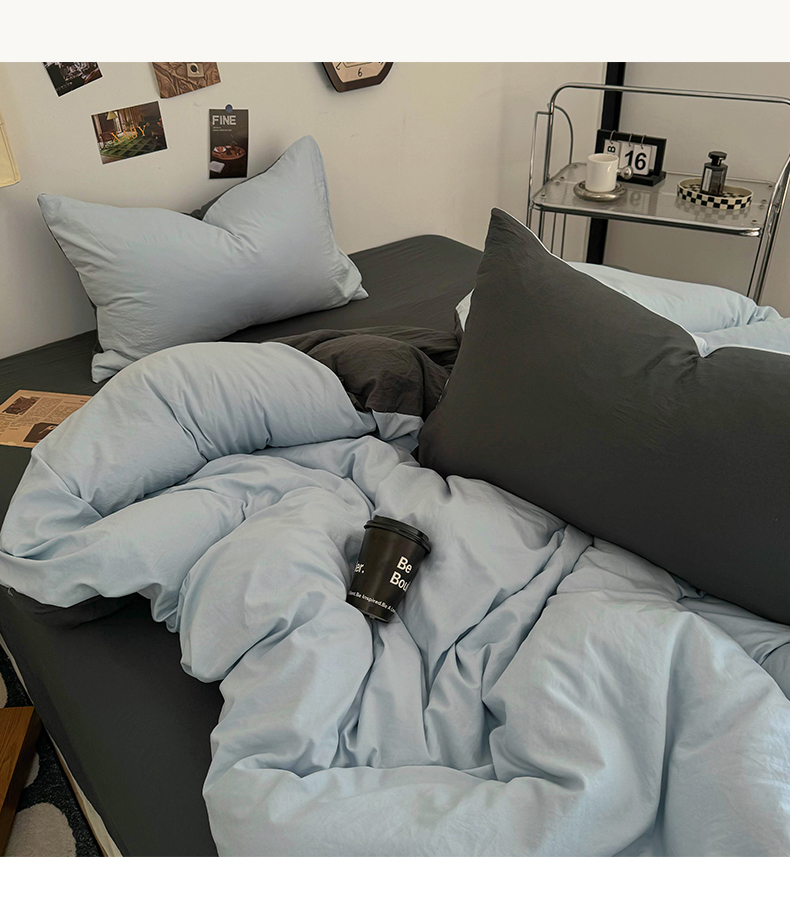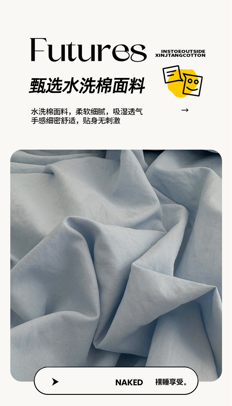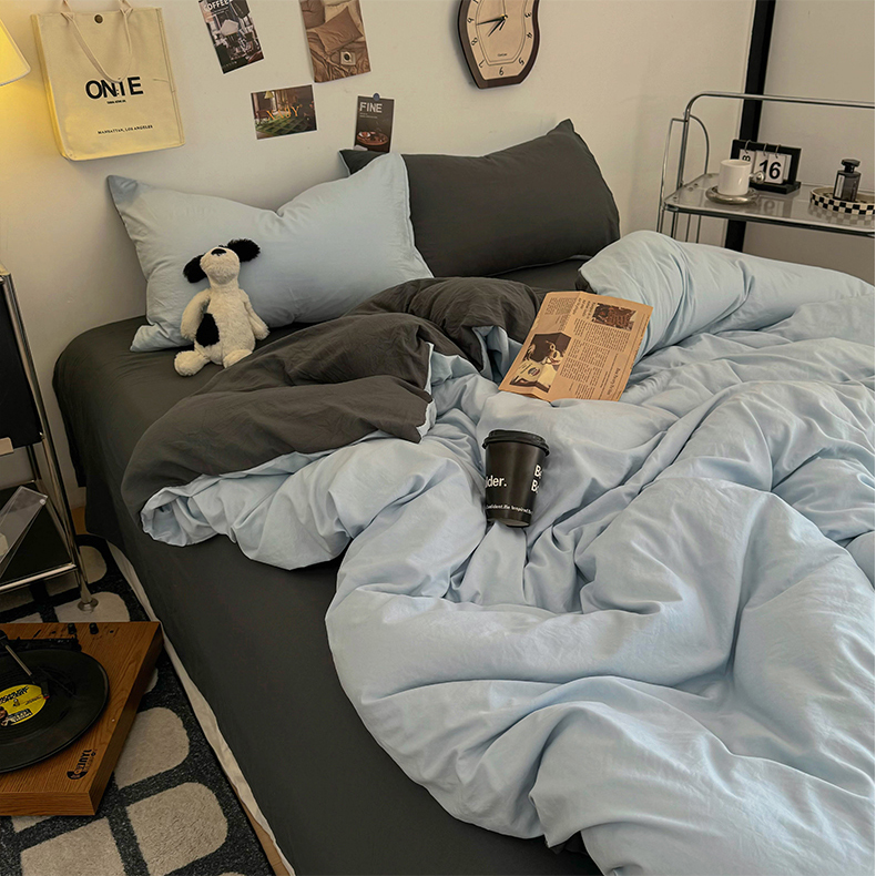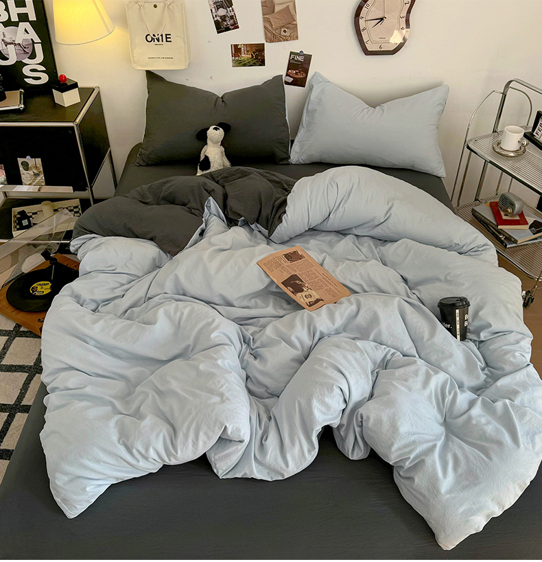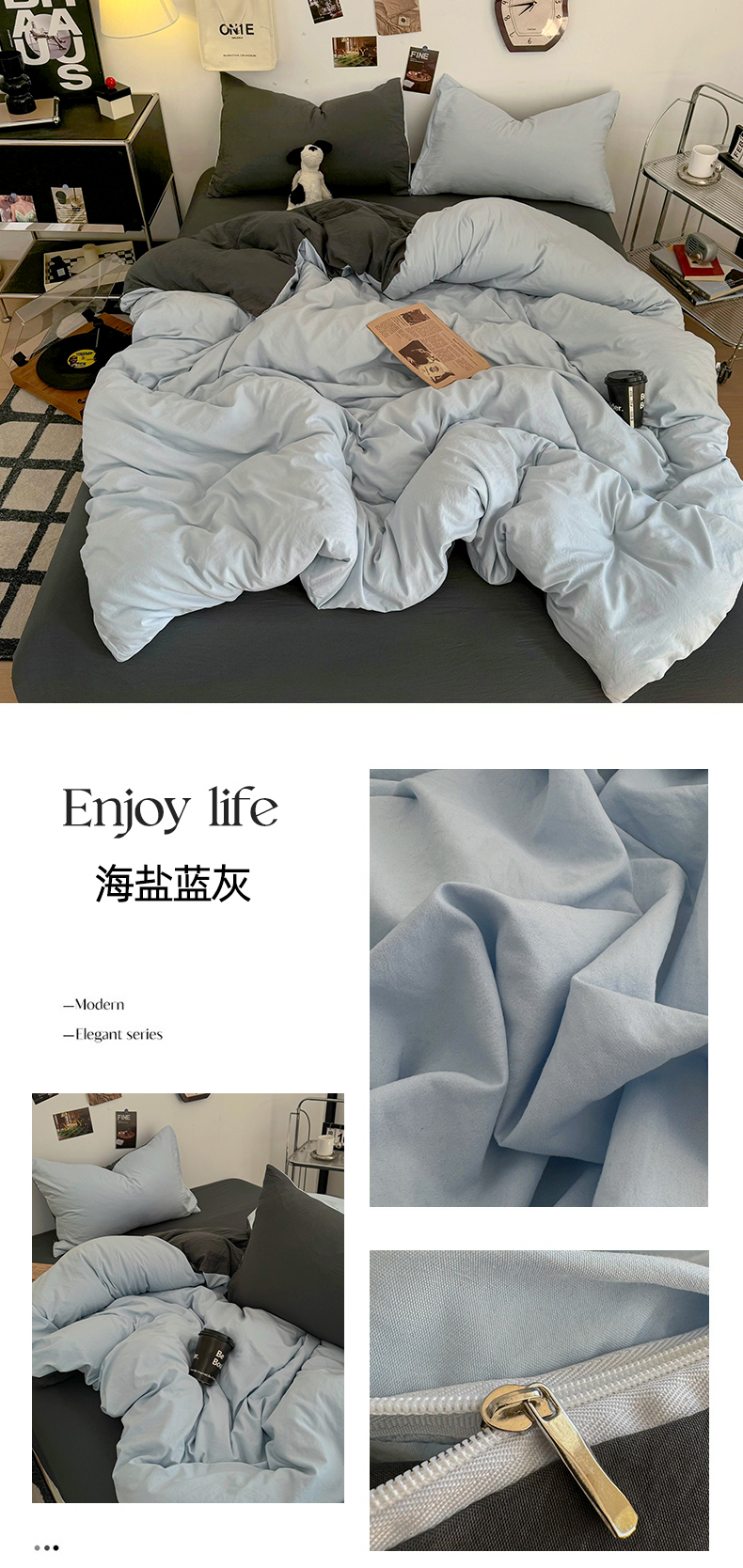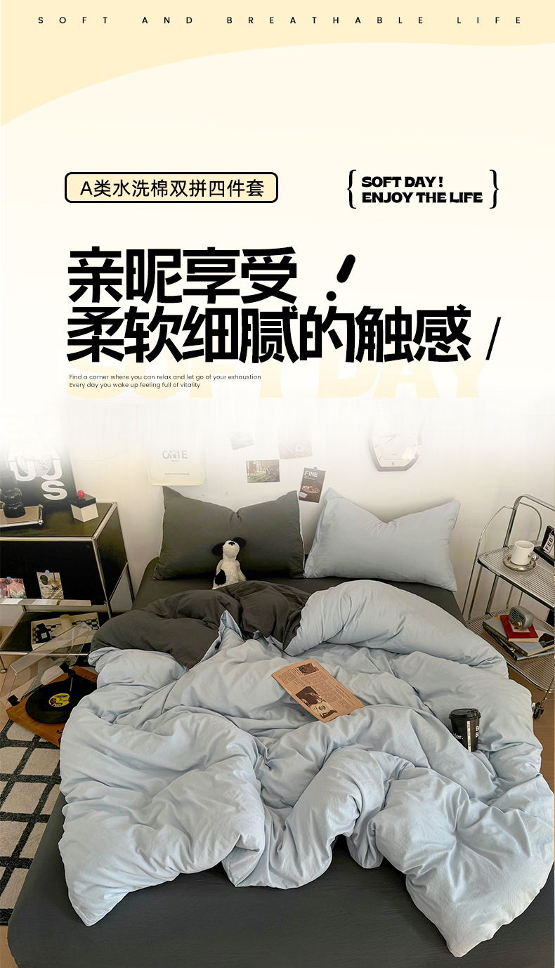 当前位置: 91家纺网 > 商品网购 > 床品套件 > 四件套 > 水洗棉四件套 > 耀达家居 2025新款纯色A类水洗棉双拼四件套 海盐蓝灰