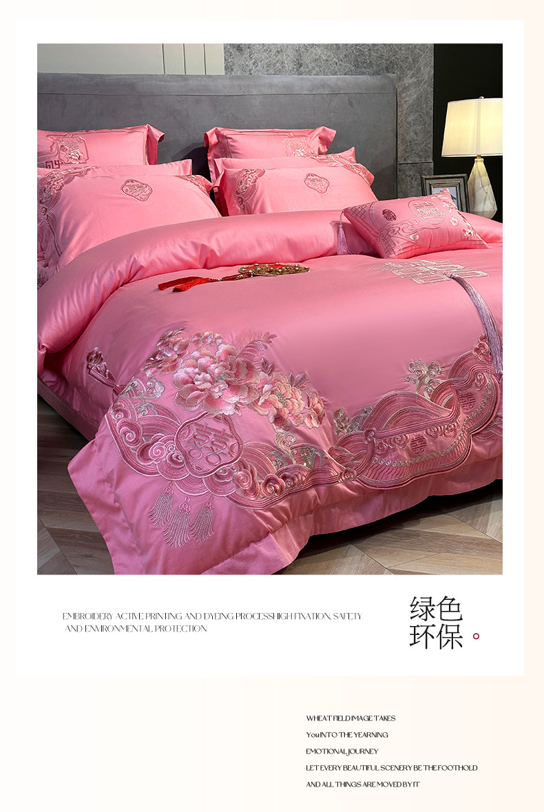 当前位置: 91家纺网 > 商品网购 > 床品套件 > 四件套 > 婚庆四件套 > 美娘阁 2025新款长绒棉贡缎提花款新中式古典韵味精美刺绣粉色系婚庆四件套多件套 花开并蒂 粉色