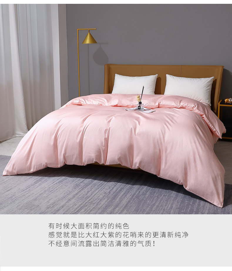 晶缦家纺 2025新款全棉纯棉50支双股贡缎长绒棉纯色单品被套 绮芸-浅粉玉