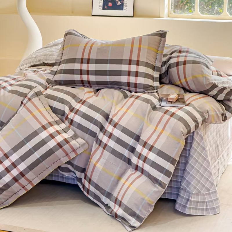 (总)玖琳家纺 2024新款全棉色织水洗棉四件套,粉紫小格,粉紫中格,复古条灰,蓝中格,罗曼黄,蜜恋,肖邦 粉,星辰 绿,星辰紫,雅典 绿,知否