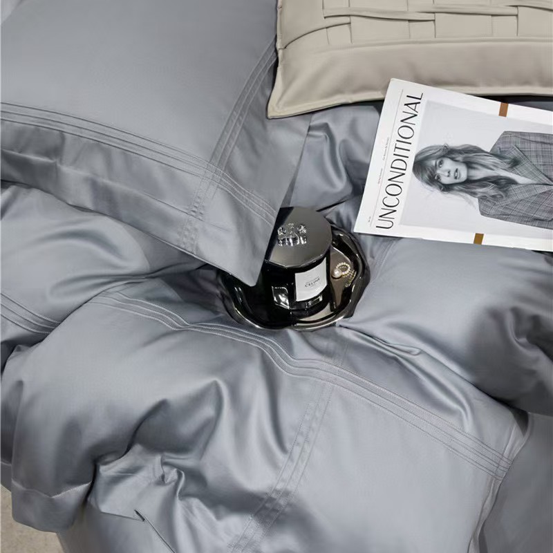 商品名称:玖琳家纺 2025新款100s CR工艺埋绳款新疆长绒棉四件套 灰色