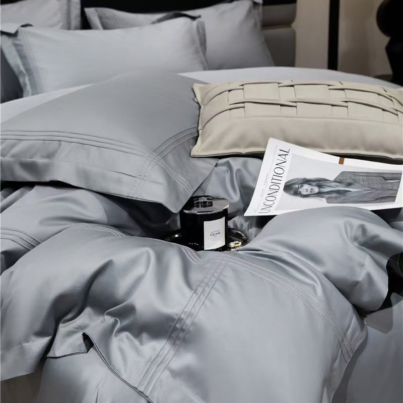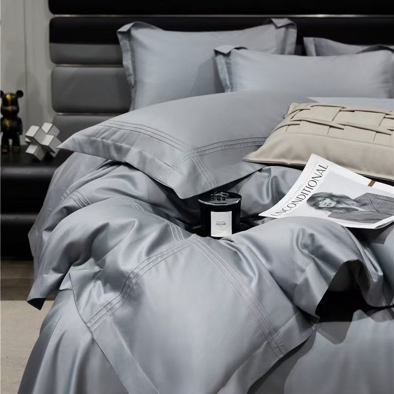 玖琳家纺 2025新款100s CR工艺埋绳款新疆长绒棉四件套 灰色