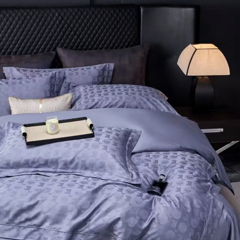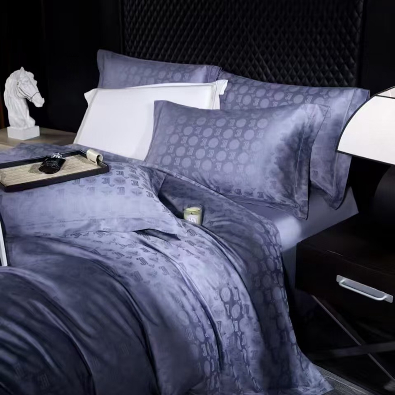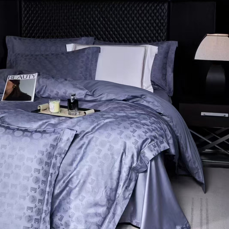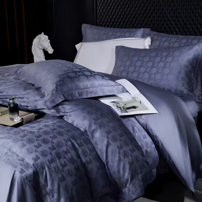 玖琳家纺 2025新款100s提花高支高密新疆长绒棉四件套 芬妮 夜空蓝
