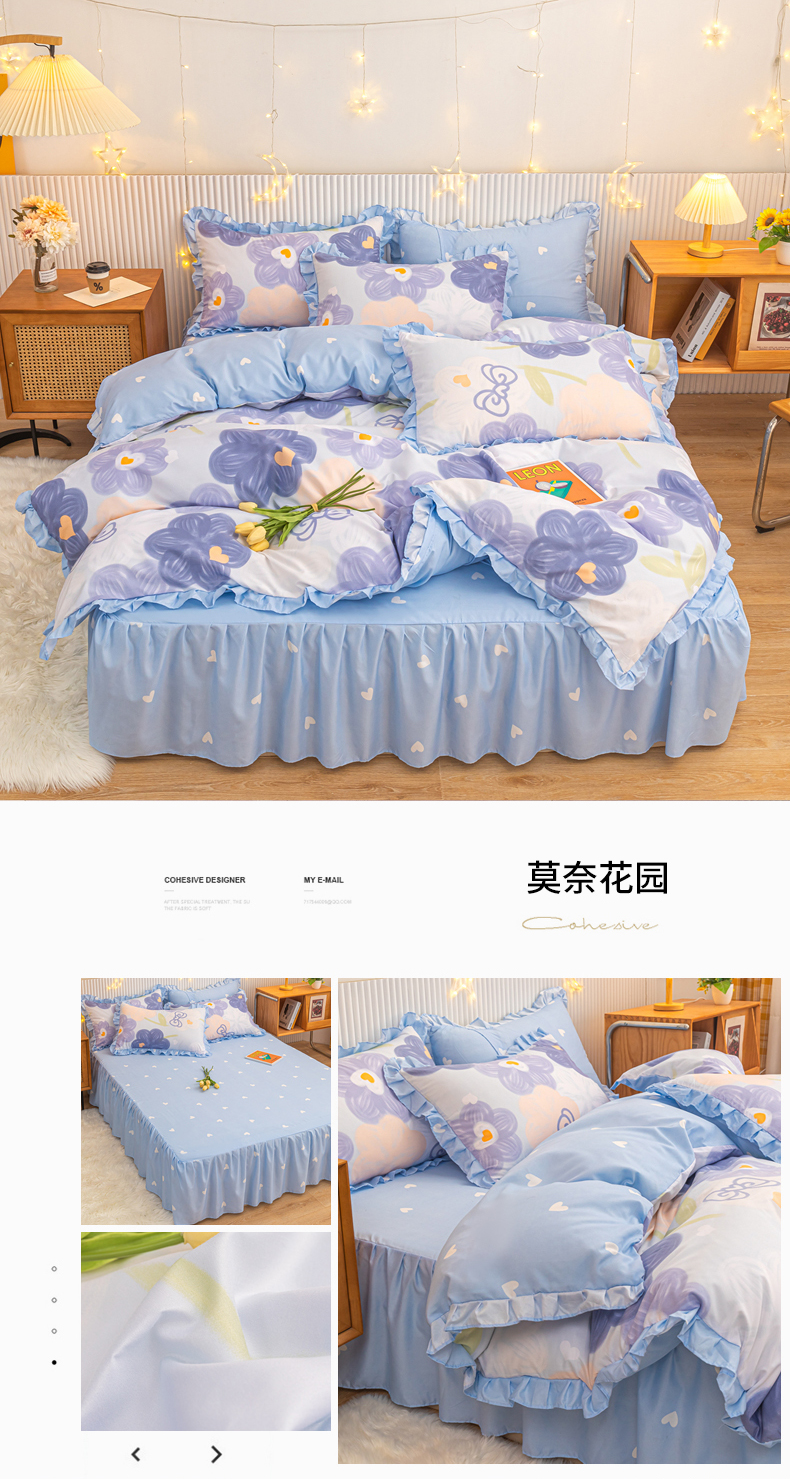 商品名称:莎臣豹2025韩版花边床单款床裙款四件套莫奈花园