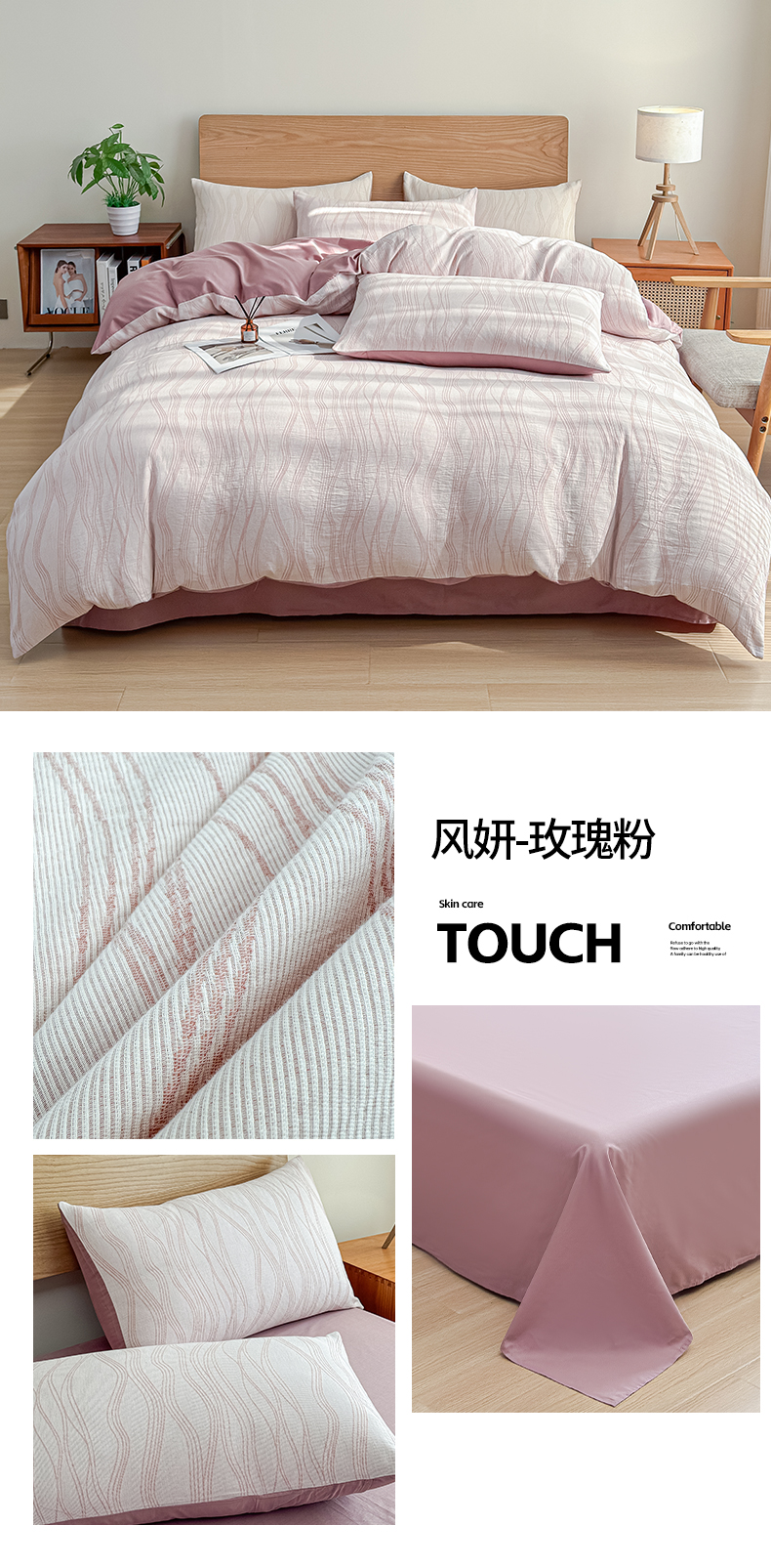 (总)莱茵家居 2025新款全棉纯棉皱皱纱条纹四件套-杼影,杼影-咖纸蓝,杼影-冷雾蓝,杼影-麦浪紫,杼影-绵云咖,杼影-奶泡粉,杼影-暖果黄,杼影-午茶绿,杼影-雨巷灰