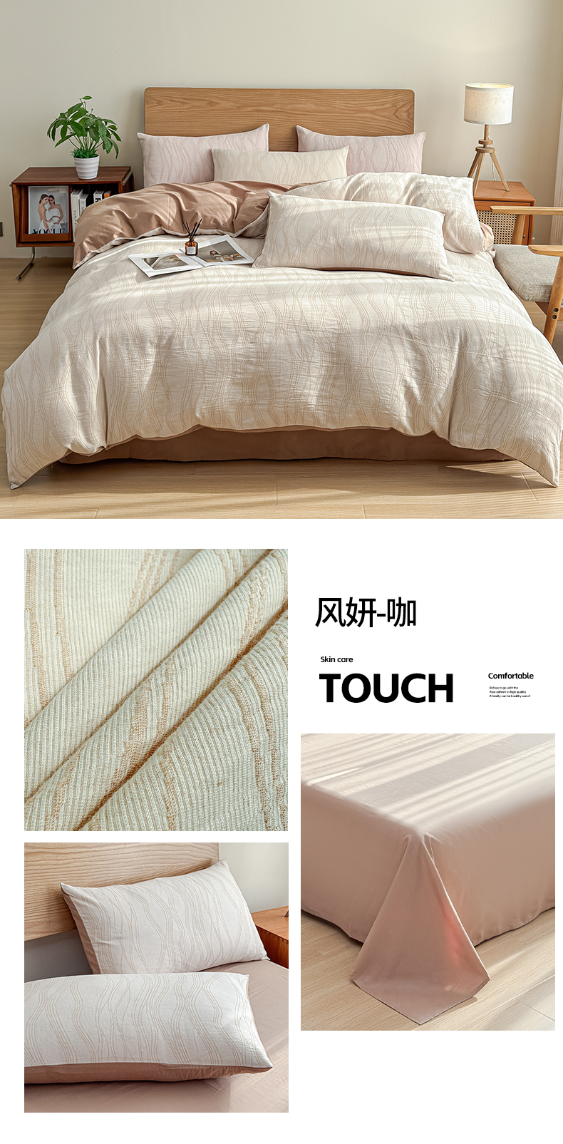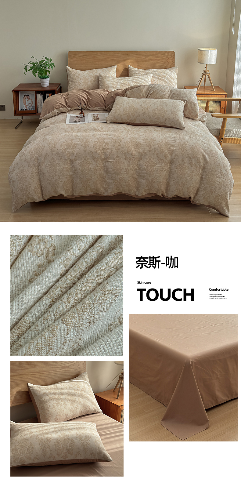 (总)莱茵家居 2025新款A类60支厚织提花美拉德风全棉纯棉四件套-暮合系列,暮合-可可,暮合-米咖,暮合-奶茶,暮合-棕榈