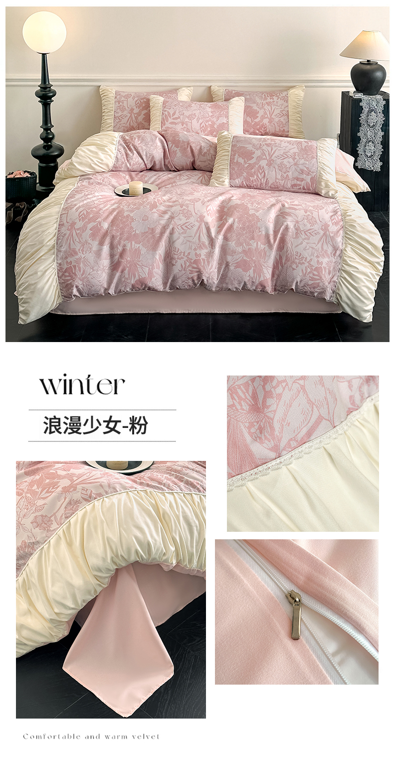 当前位置: 91家纺网 > 商品网购 > 床品套件 > 四件套 > 普通磨毛四件套 > 一左一右2025春夏新款法式少女风数码印花褶皱花边水洗棉磨毛四件套 浪漫少女-粉