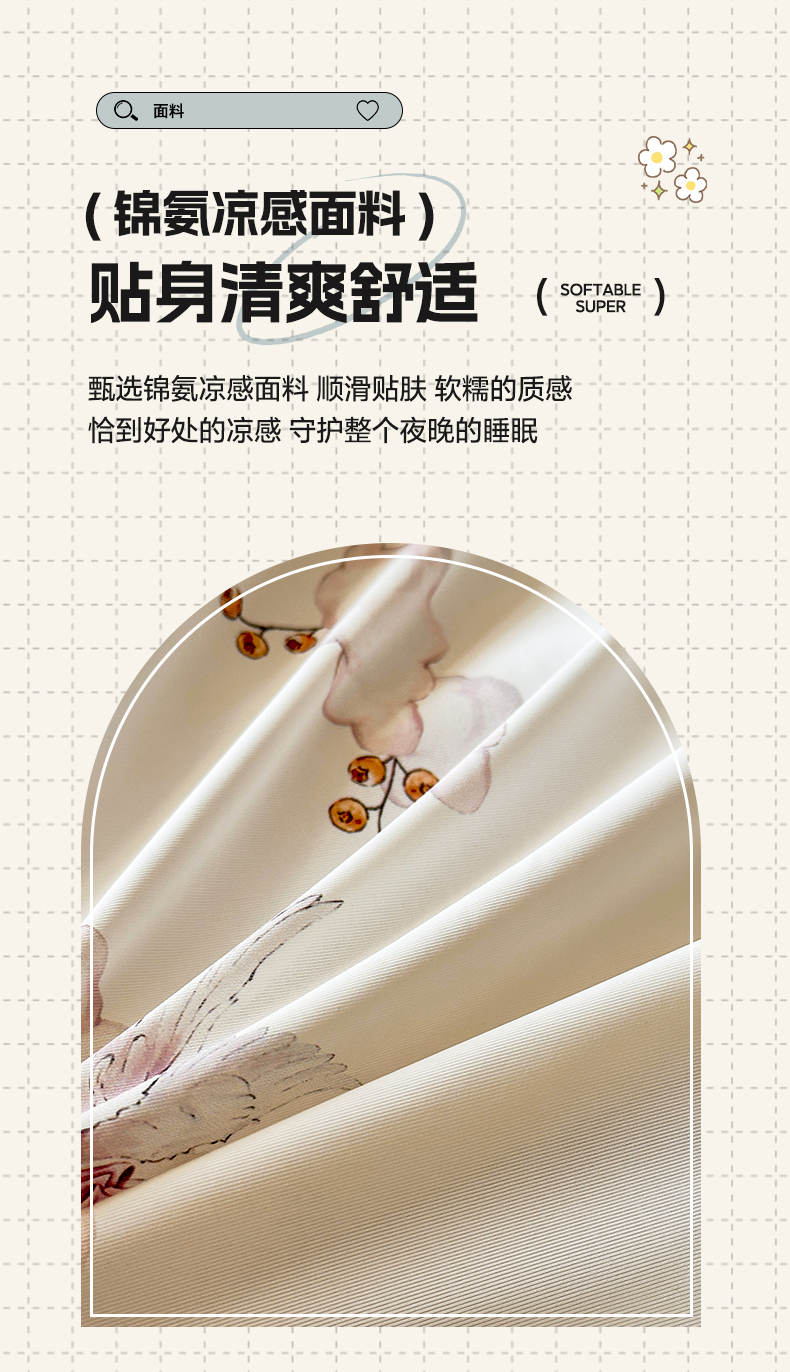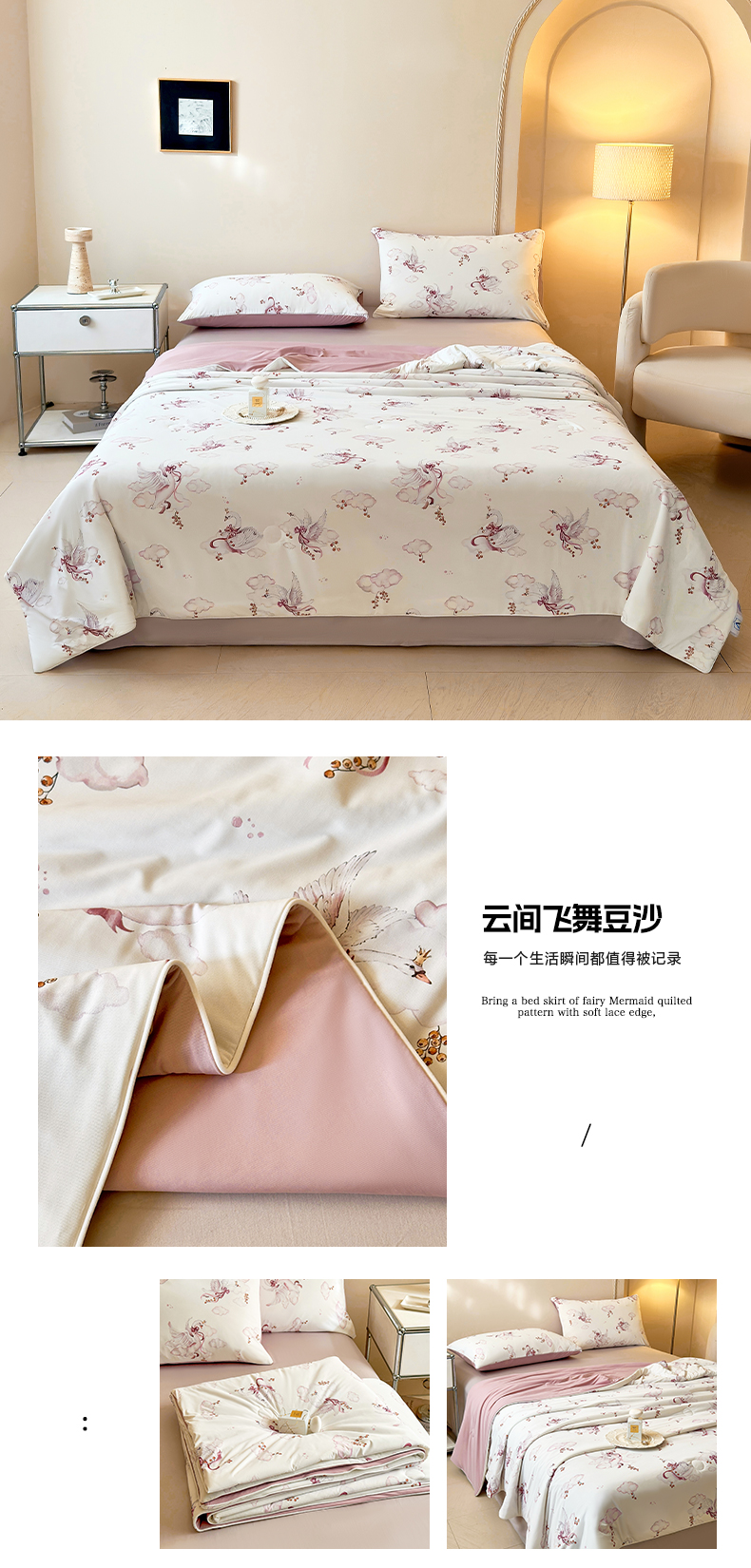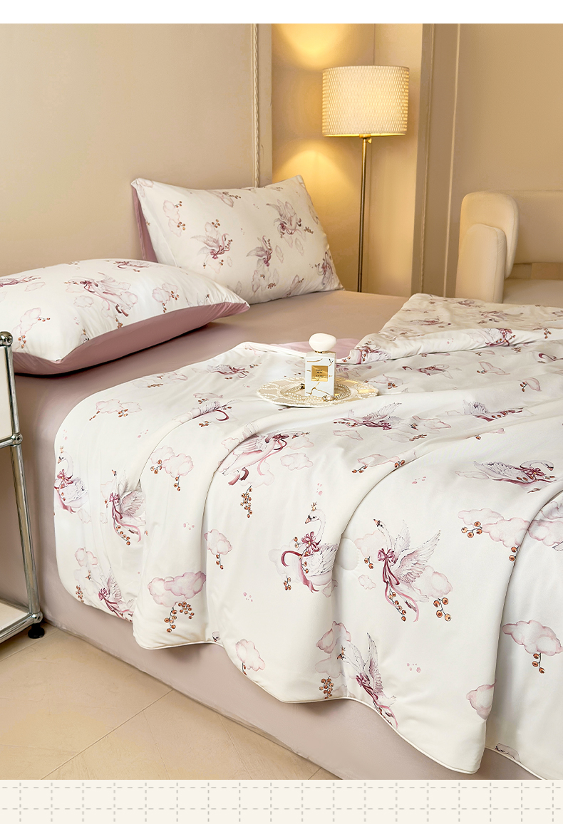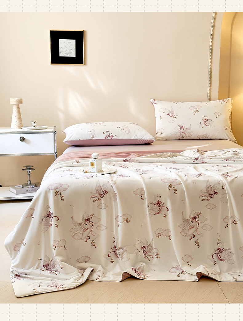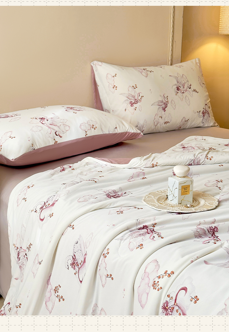 商品名称:莱登卡奴 2025新款A类锦氨凉感被数码印花夏被 云间飞舞豆沙