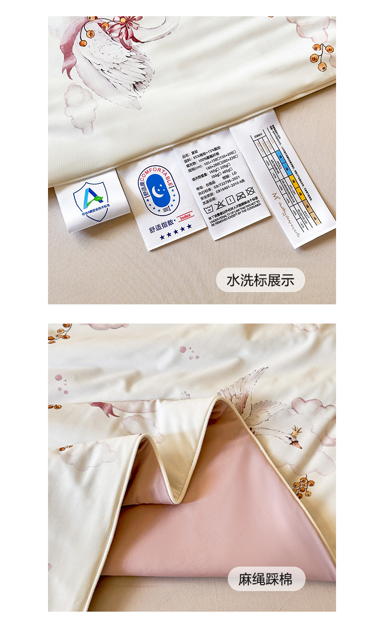 (总)莱登卡奴 2025新款A类原棉水洗棉轻奢贴标麻绳款大豆被被子被芯,轻奢-粉玉,轻奢-奶白,轻奢-浅灰