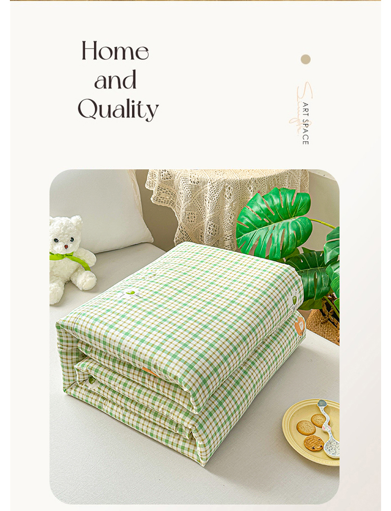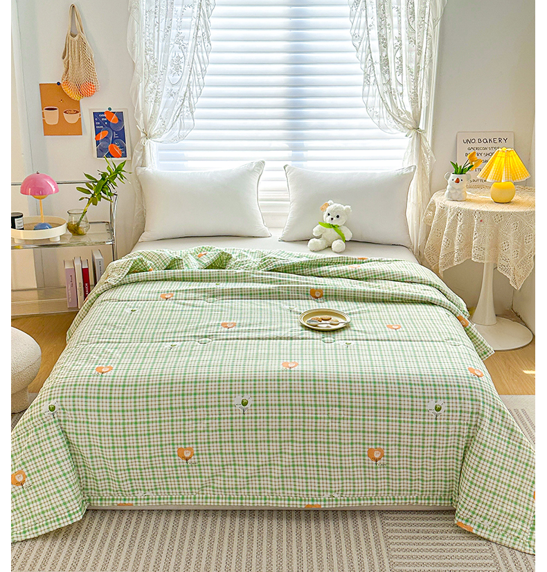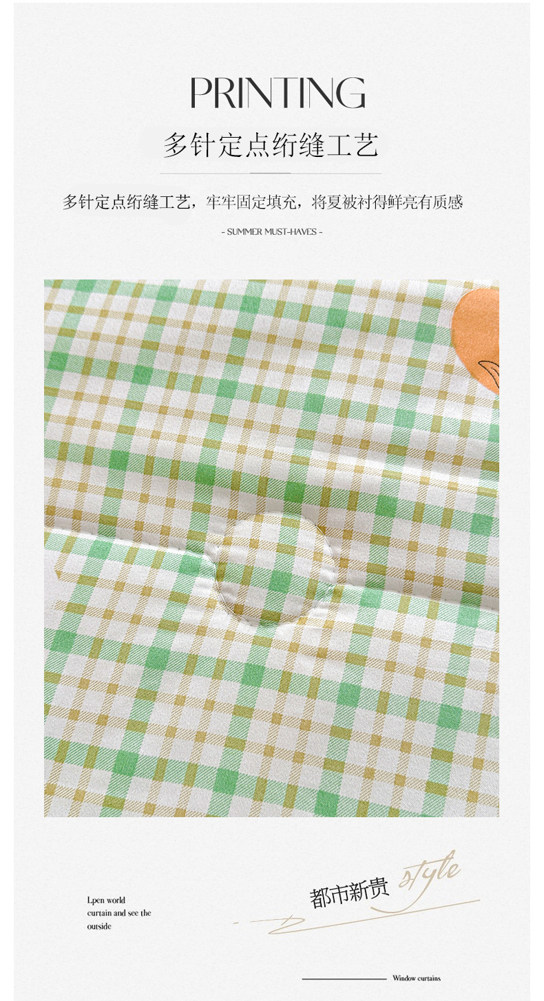 商品名称:好欣怡家纺 2026新款生态棉夏被礼品被空调被直播引流款夏凉被子 生态棉包边款-绿格