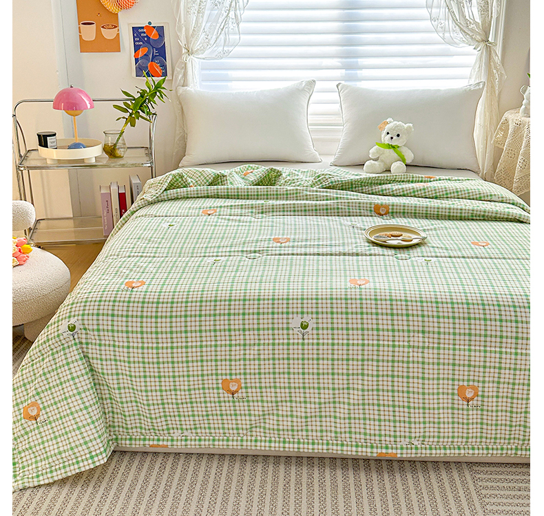 好欣怡家纺 2026新款生态棉夏被礼品被空调被直播引流款夏凉被子 生态棉包边款-绿格