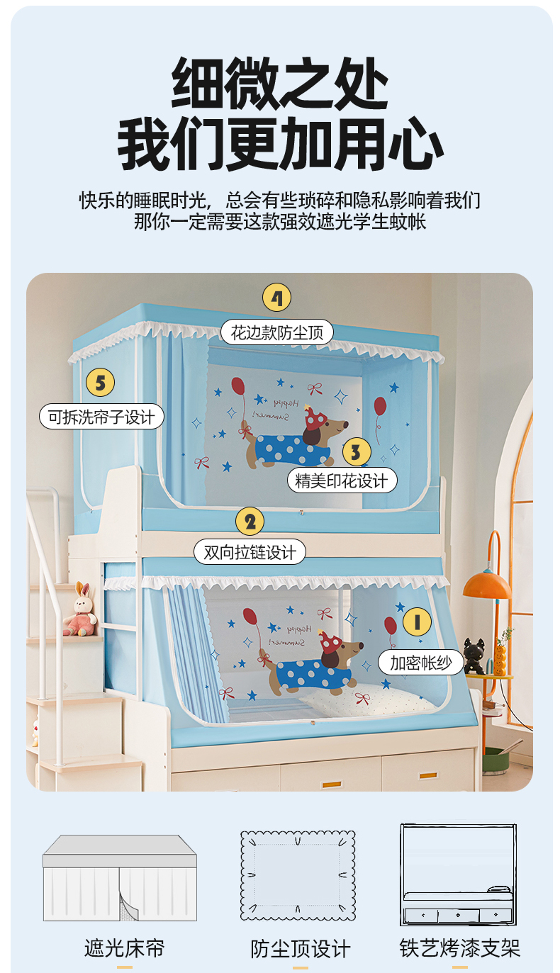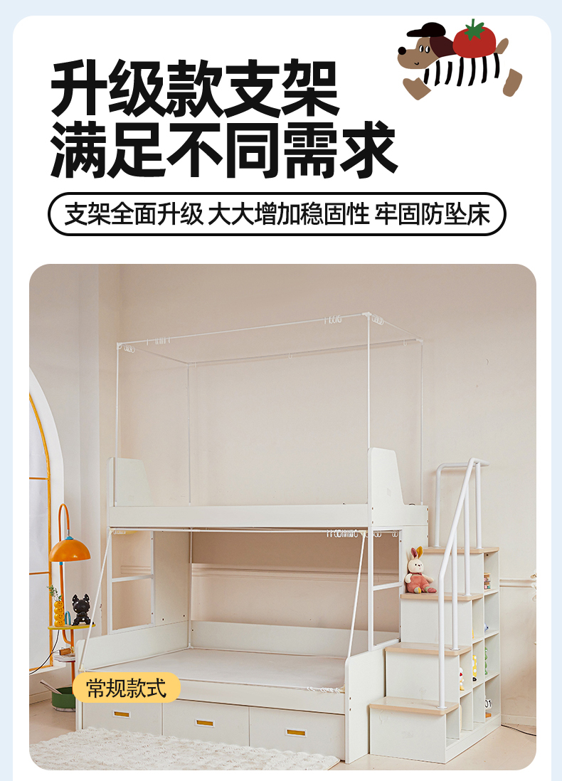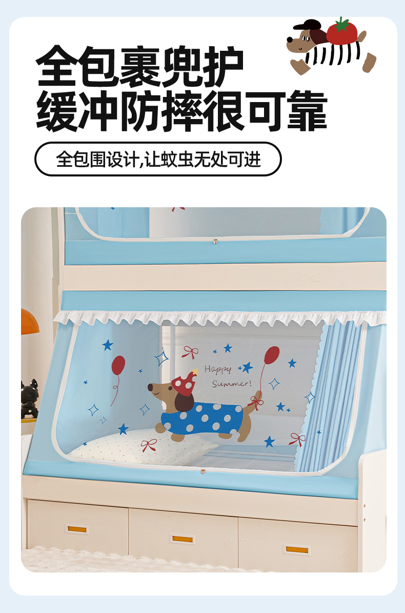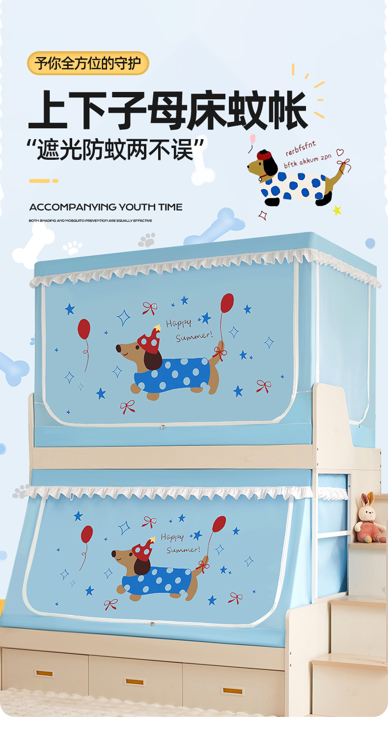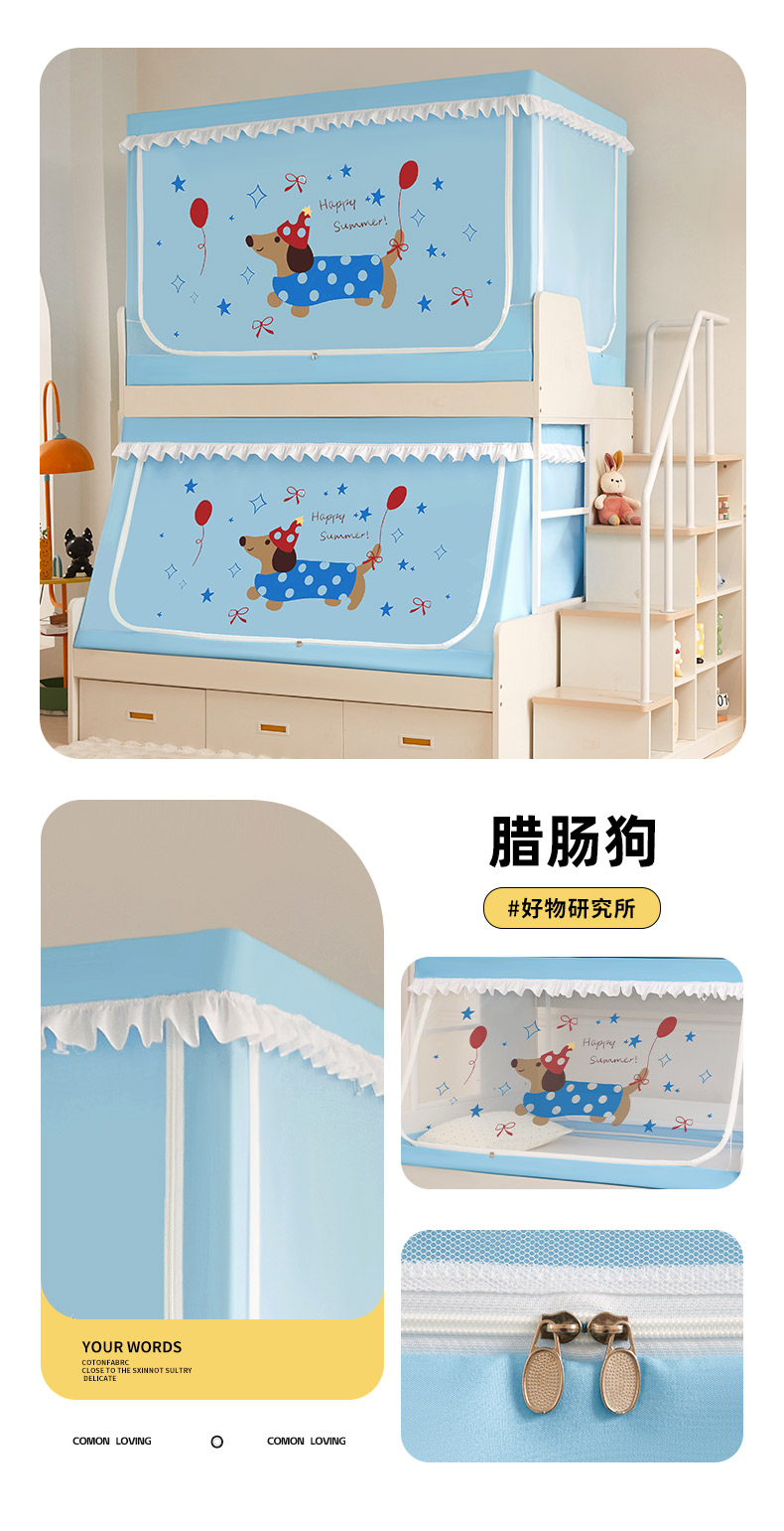 当前位置: 91家纺网 > 商品网购 > 床上用品 > 蚊帐 > 学生蚊帐 > 安金蚊帐 2025新款子母床印花蚊帐防尘顶 铁艺宽高伸缩支架 腊肠狗