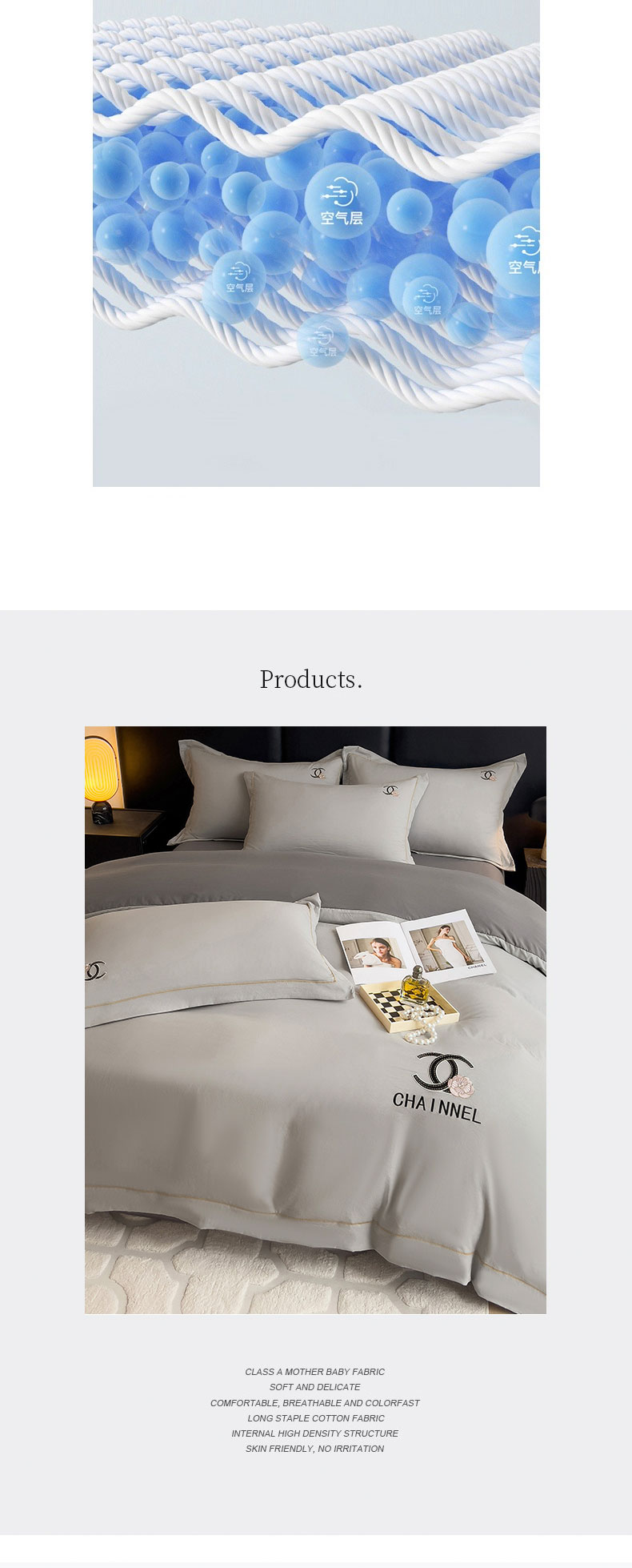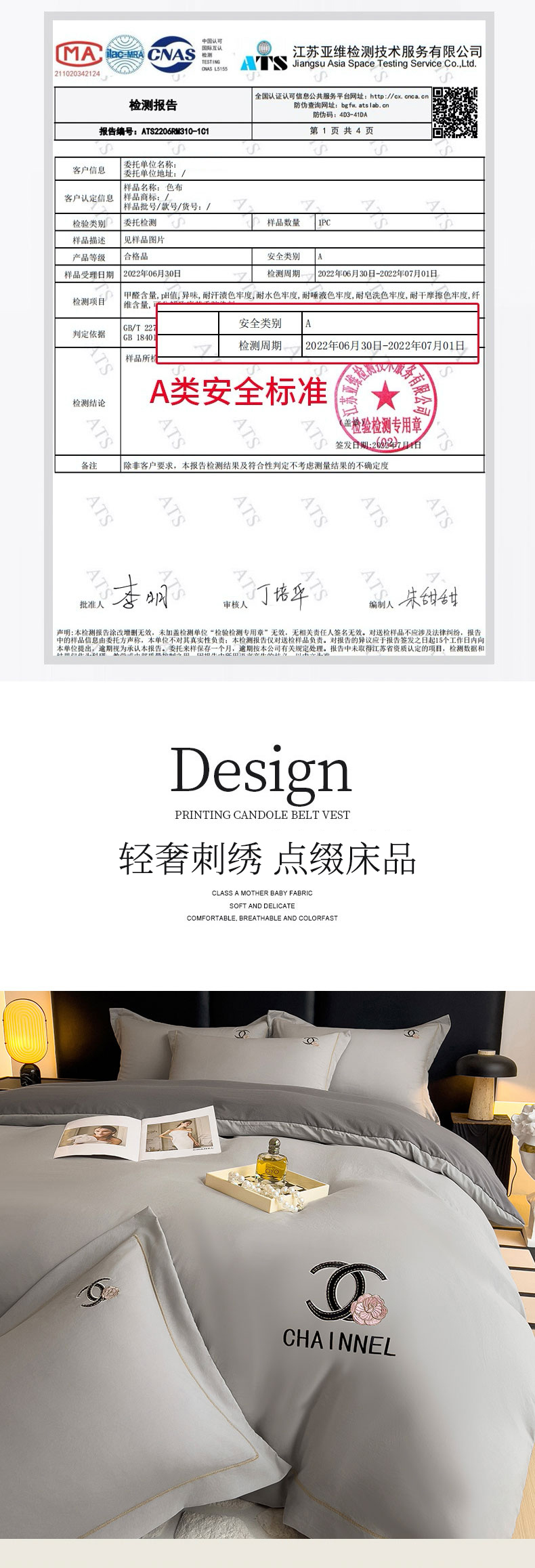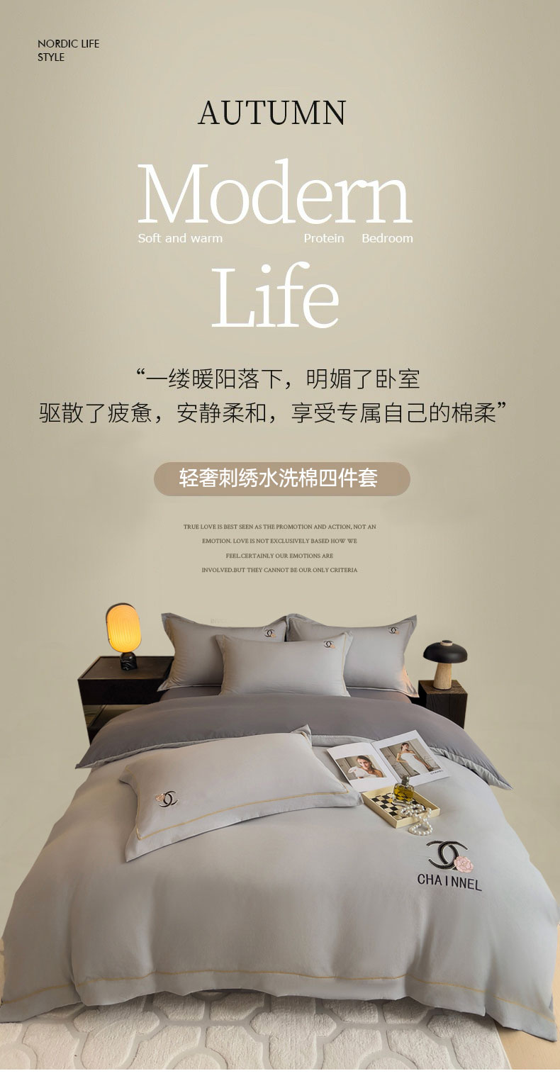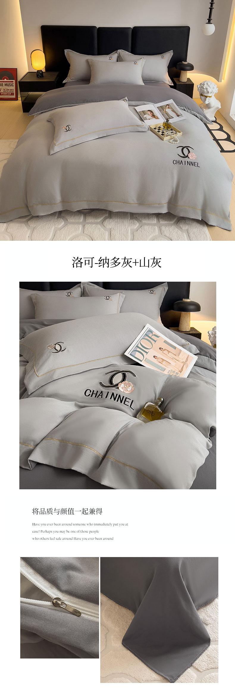 商品名称:灰鲸 2025新款轻奢洛可刺绣水洗棉套件系列 洛可-纳多灰+山灰