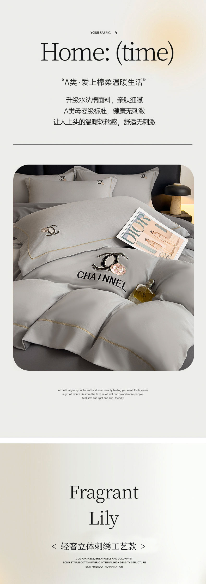 灰鲸 2025新款轻奢洛可刺绣水洗棉套件系列 洛可-纳多灰+山灰